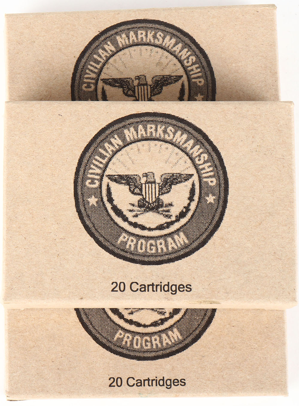 Lot of three, Lake City/CMP, .30-06 FMJ Ball, 1pc, Full, buff box with black print, box's are solid with minor wear, ammo is excellent, this is surplus ammo that has been repacked for use in the Civilian Marksmanship Program and might be corrosive. Grade: Excellent ++ - Value: 30 to 90
