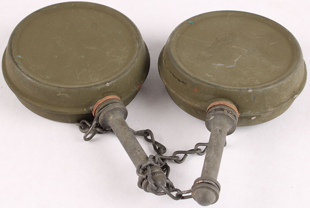 Lot of two, WW2 M1911A1 Banjo Oil bottle. Part of the M1912 squad cleaning kit. Grade: Excellent - Value: 20 to 60