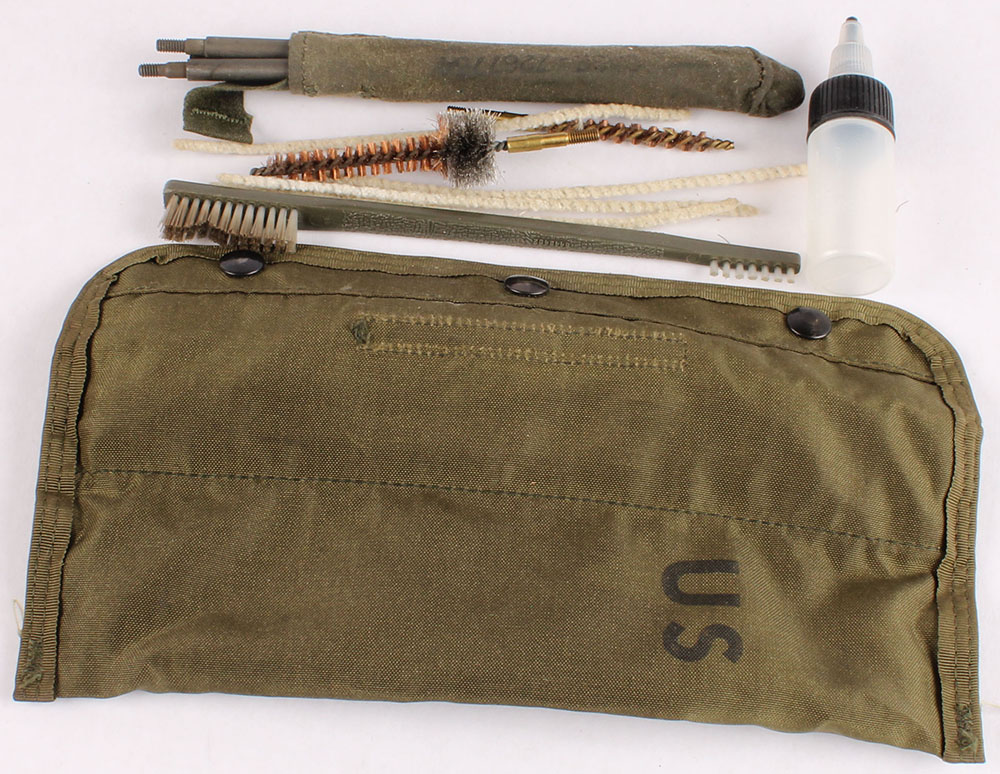 US, complete M16A1 cleaning kit, with rods, bore brushes, oil bottle & brush. Grade: Excellent - Value: 10 to 40
