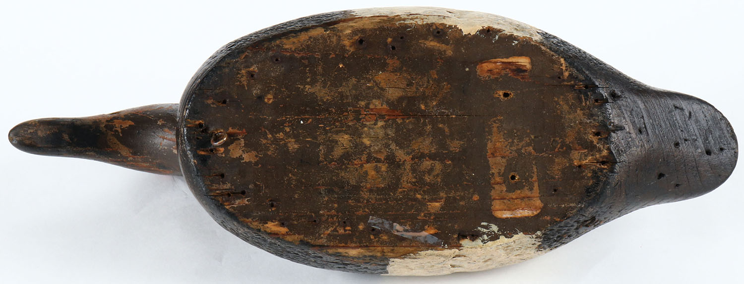 Canvasback Drake by unknown factory. Glass eyes, hollow wood, old hunter repaint, structurally excellent. Grade: Excellent - Value: 40 to 80
