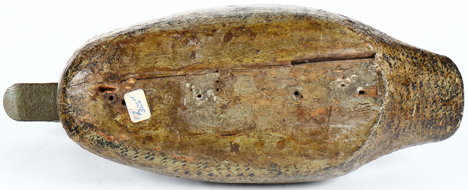 Pintail Hen unknown maker, glass eyes, solid wood, original paint, has age cracks on bottom. Grade: Very Good + - Value: 100 to 200