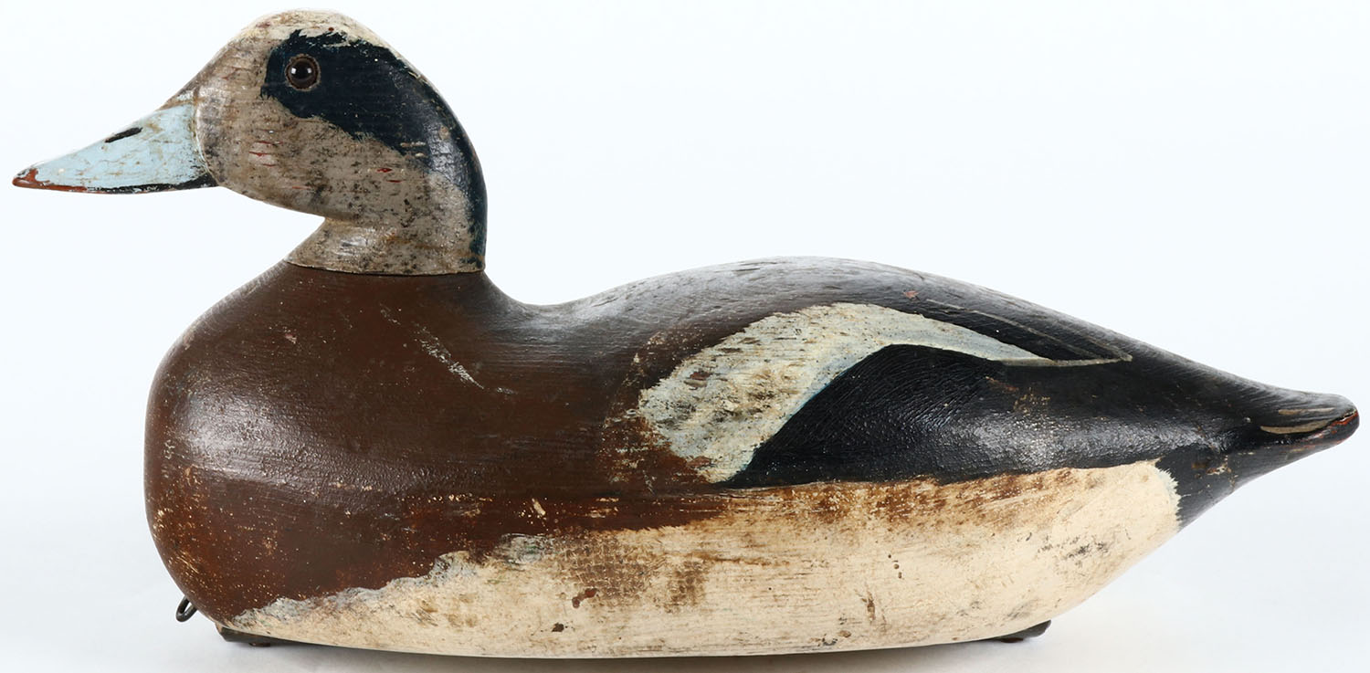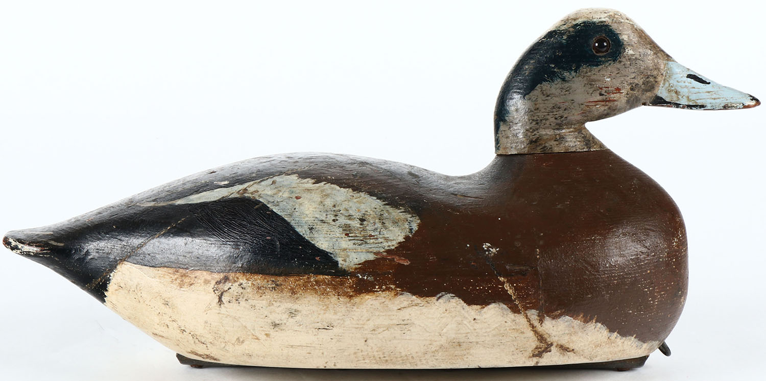 Widgeon Drake by unknown maker, glass eyes, hollow wood, original paint, structurally excellent. Grade: Very Good ++ - Value: 100 to 200
