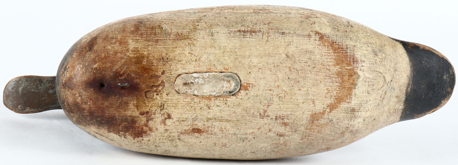 Painted-Eye Bluebill Drake Mason Decoy Company, Detroit, MI, 1896-1924. Solid wood, combination of hunter strengthening and some original paint showing with typical wear, head comes all the way off. Grade: Very Good - Value: 40 to 80