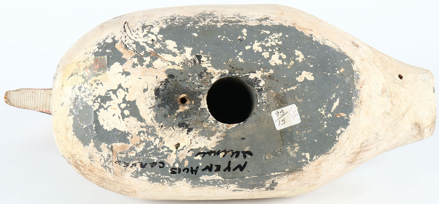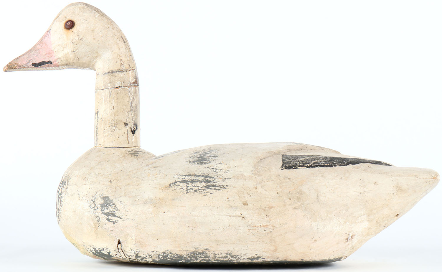 Snow Goose by unknown maker, tack eyes, solid wood, combination of original and old hunter working repaint, structurally excellent. Grade: Very Good + - Value: 80 to 150