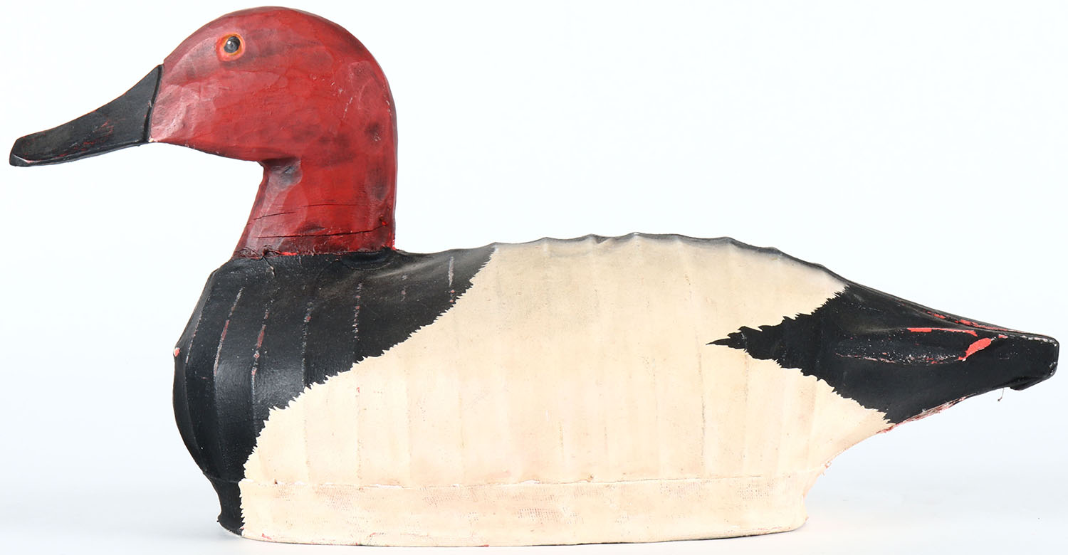 Canvasback Drake by unknown maker, painted eyes, canvas over wire, repainted, structurally excellent. Grade: Very Good ++ - Value: 26 to 50