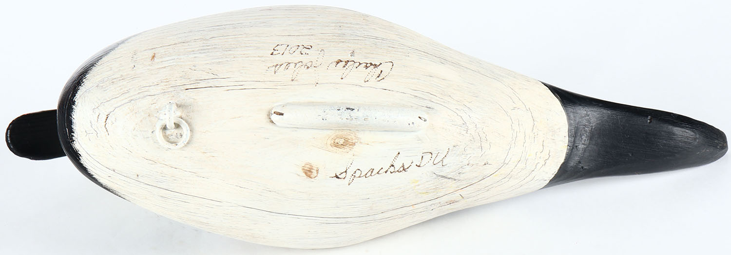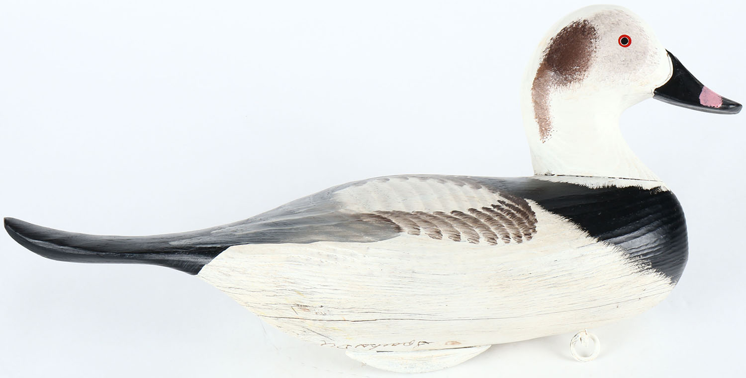 Long Tailed Duck (Oldsquaw) by Harry Jobes, Harve De Grace, MD. Painted eyes, solid wood, original paint, structurally excellent, signed by HARRY JOBES on bottom. Grade: MINT - Value: 50 to 100