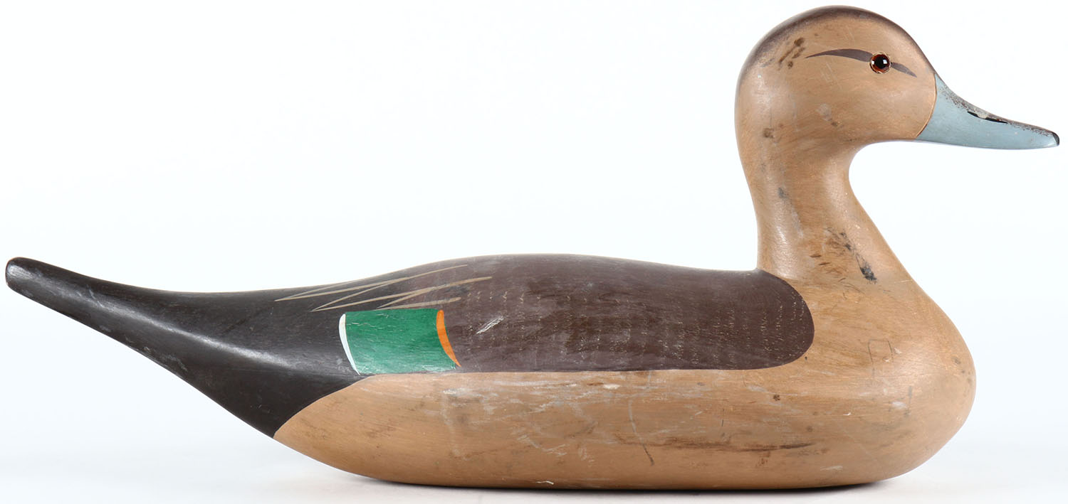 Pintail Hen by Jon W. Tieder, Cambridge, MD, glass eyes, solid wood, original paint, structurally excellent, signed on bottom. Grade: Excellent - Value: 50 to 100