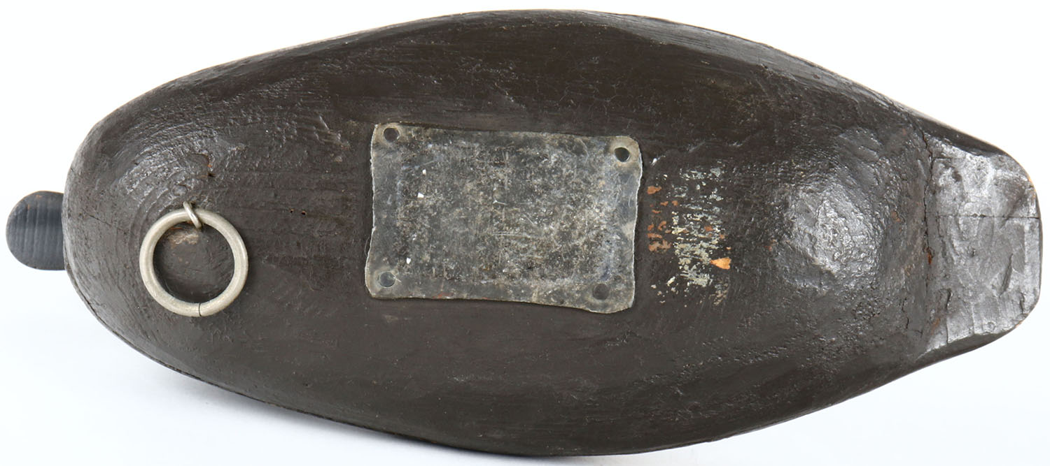Bluebill Hen by unknown maker, glass eyes, hollow wood, original paint, structurally excellent. Grade: Excellent - Value: 60 to 100