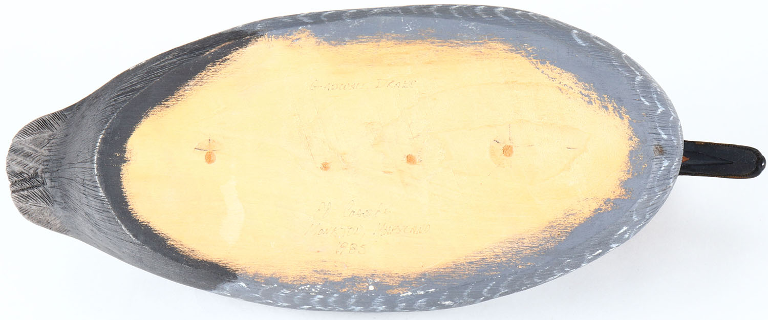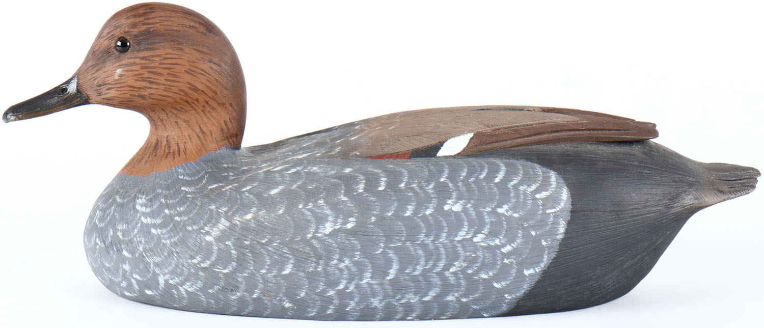 Gadwall Drake by Ed Cassedy, Monkton, Maryland, glass eyes, solid wood, original paint, structurally excellent, signed on bottom. Grade: MINT - Value: 40 to 80