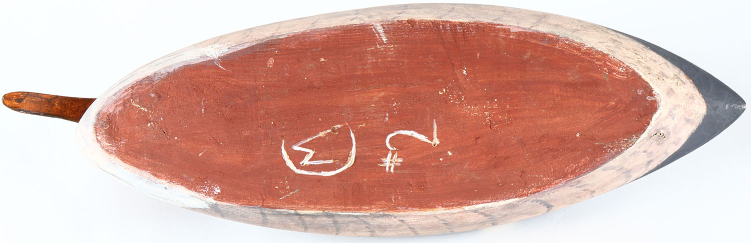 Hooded Merganser by Maynard Caine, Ontario, Canada, glass eyes, solid wood, original paint, branded M on bottom. Grade: Excellent + - Value: 40 to 80
