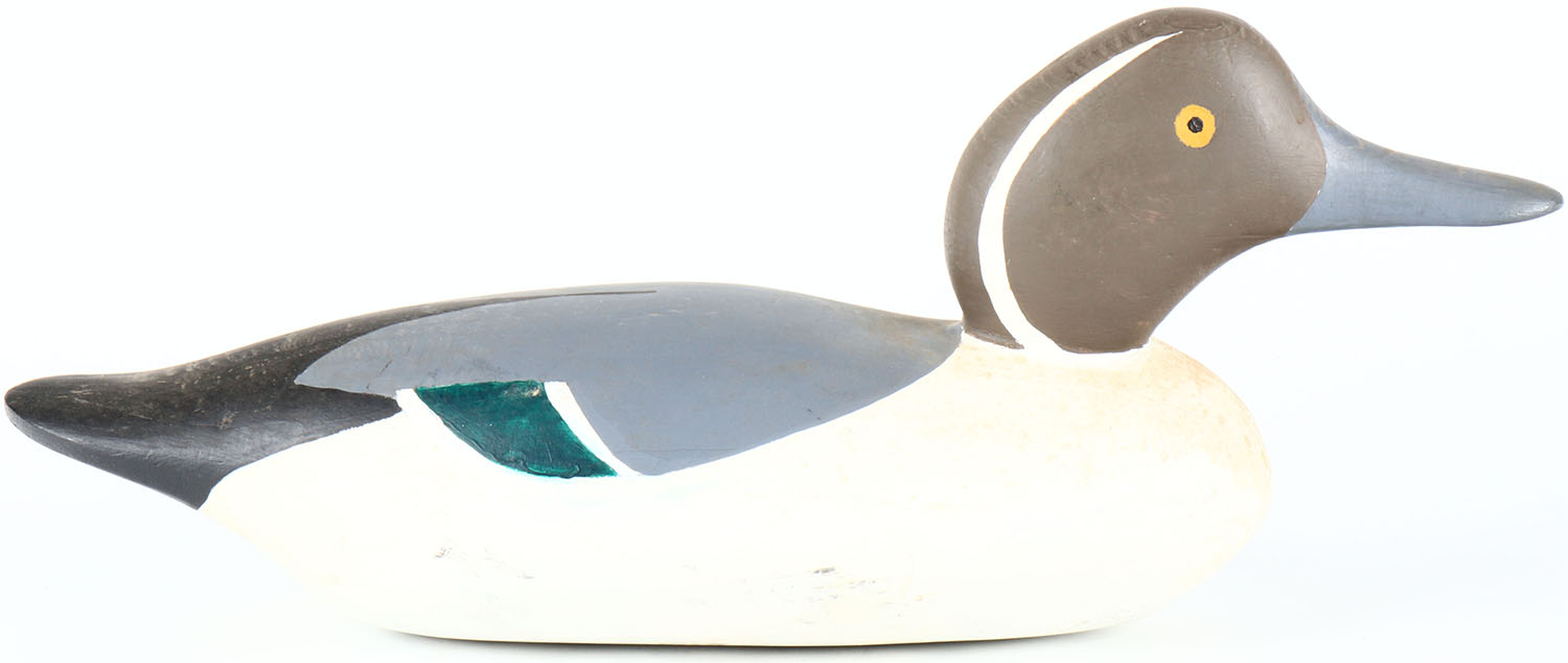 Pintail Drake by unknown factory, painted eyes, solid wood, collector repaint, structurally excellent. Grade: Excellent - Value: 20 to 40