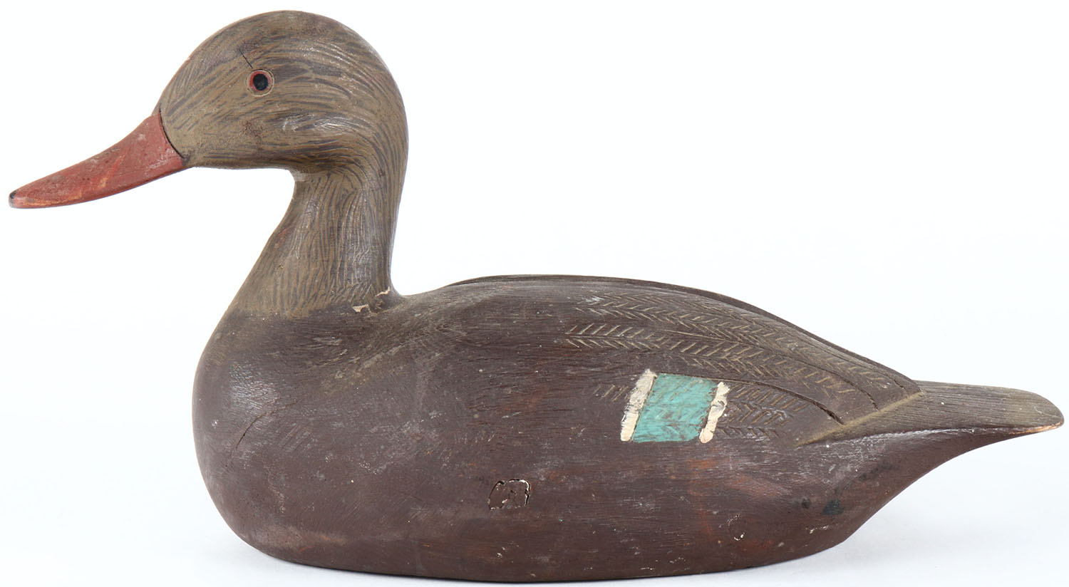 Mallard Hen by unknown Quebec maker, painted eyes, hollow wood, original paint, structurally excellent. Grade: Excellent - Value: 60 to 100