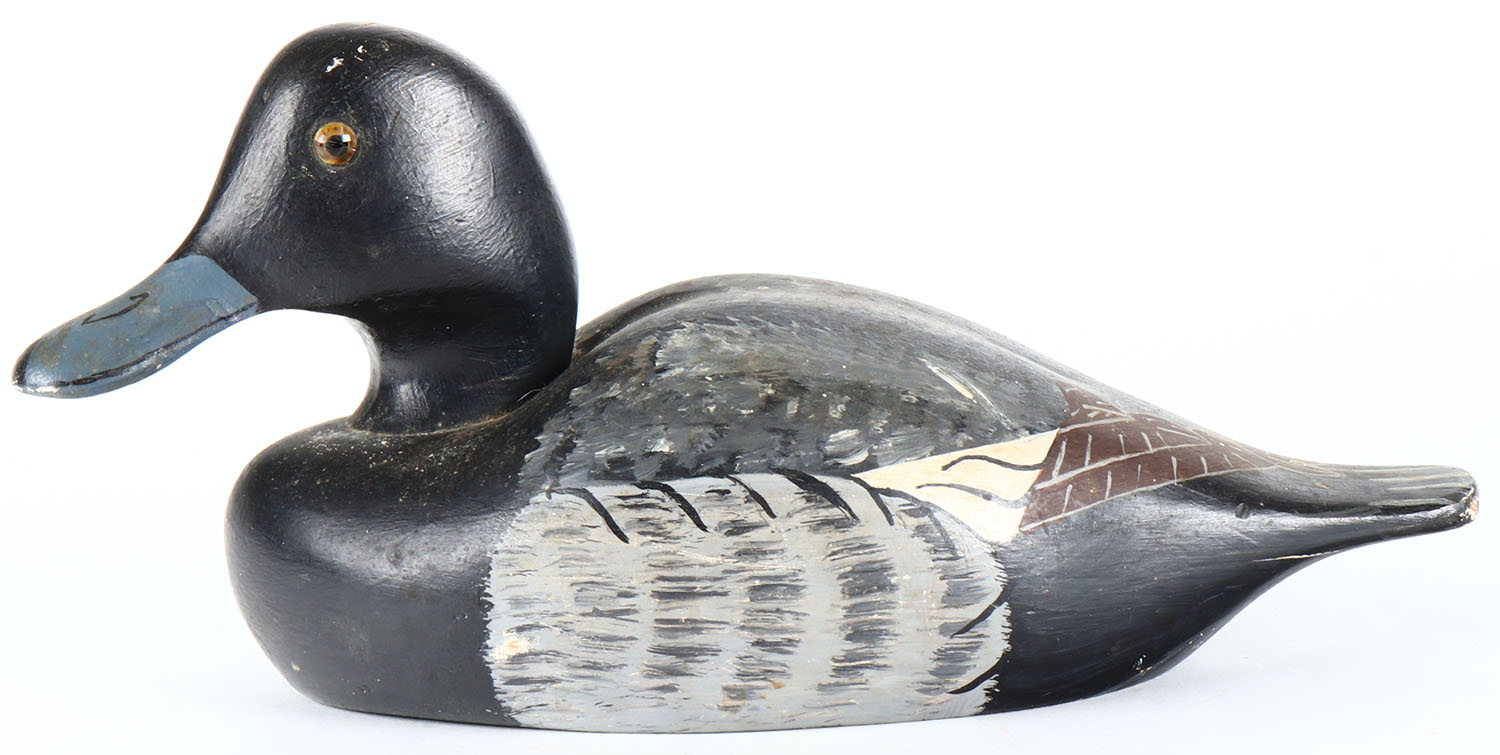 Bluebill Drake by unknown maker, glass eyes, solid wood, original paint, structurally excellent. Grade: Excellent ++ - Value: 20 to 40