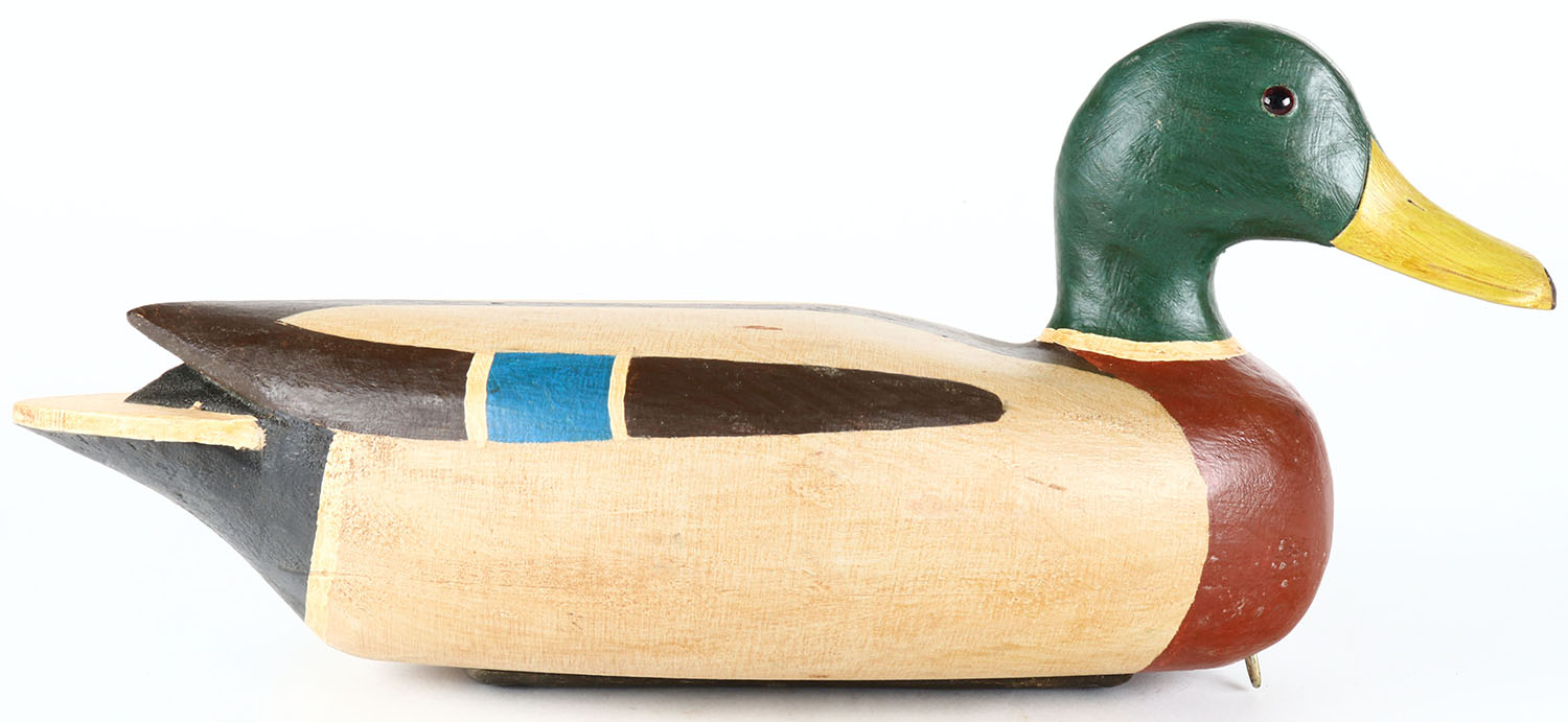 Mallard Drake by unknown maker, glass eyes, solid wood, original paint, structurally excellent. Grade: Excellent - Value: 30 to 60
