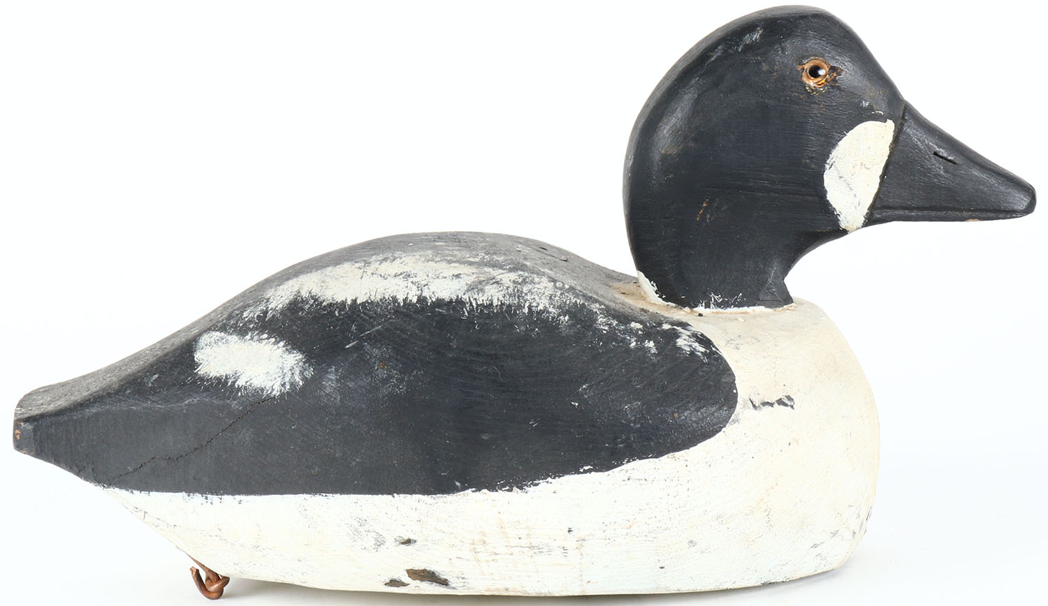Goldeneye Drake by unknown maker, glass eyes, solid wood, original paint, structurally excellent. Grade: Excellent - Value: 30 to 60