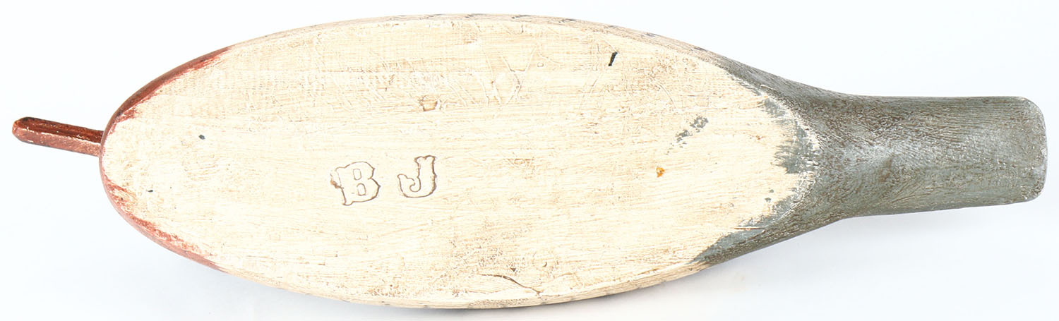 Merganser by B.J. Pawlaczyk, MI, glass eyes, solid wood, original paint, structurally excellent, branded BJ on bottom. Grade: Excellent - Value: 50 to 100