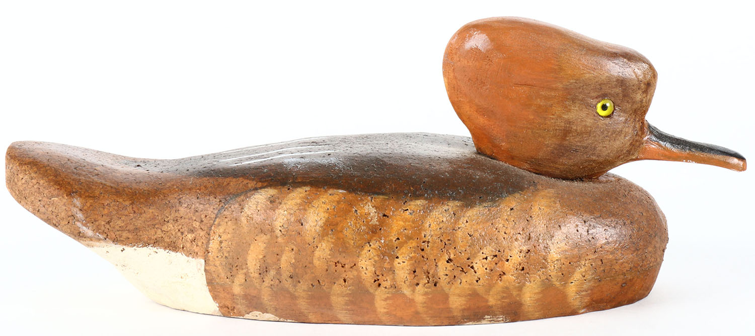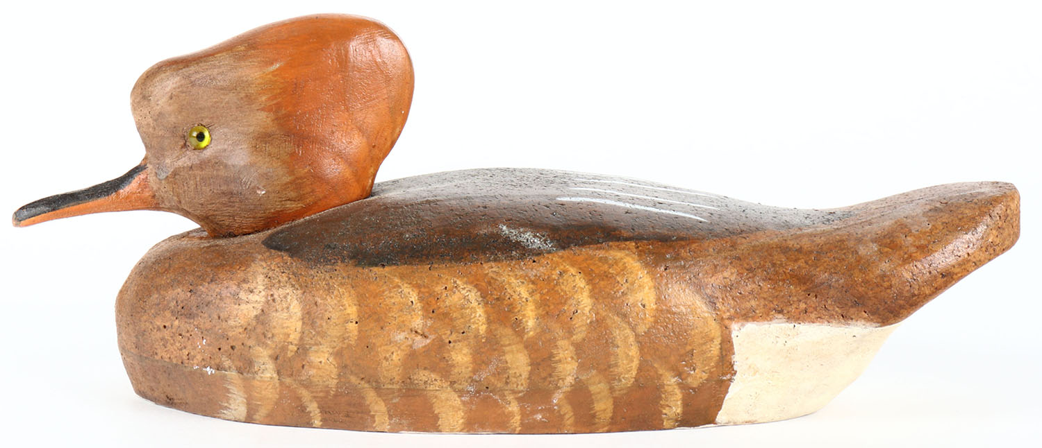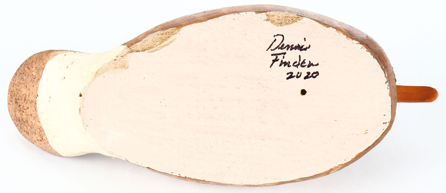 Hooded Merganser by Dennis Finden, glass eyes, solid wood, original paint, structurally excellent, signed on bottom. Grade: Excellent - Value: 30 to 60