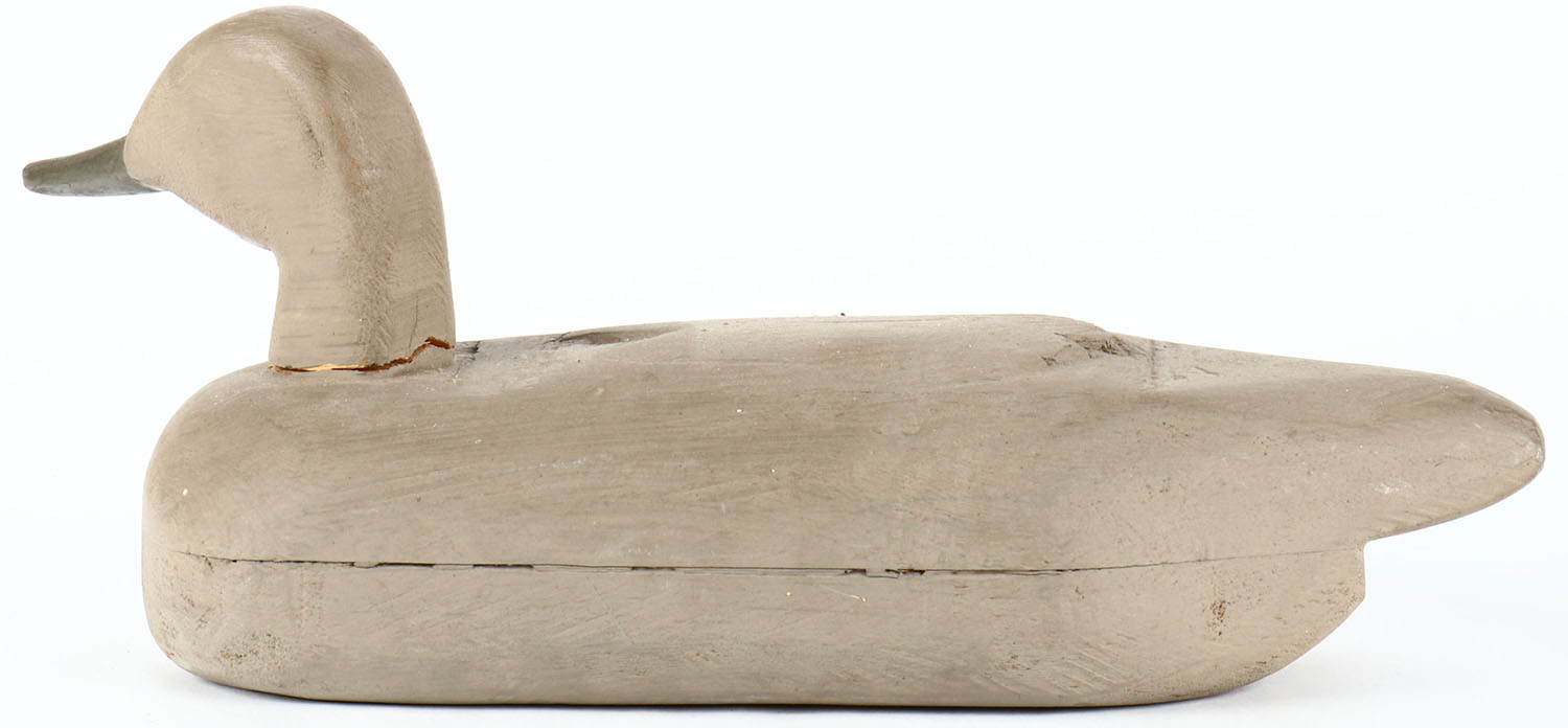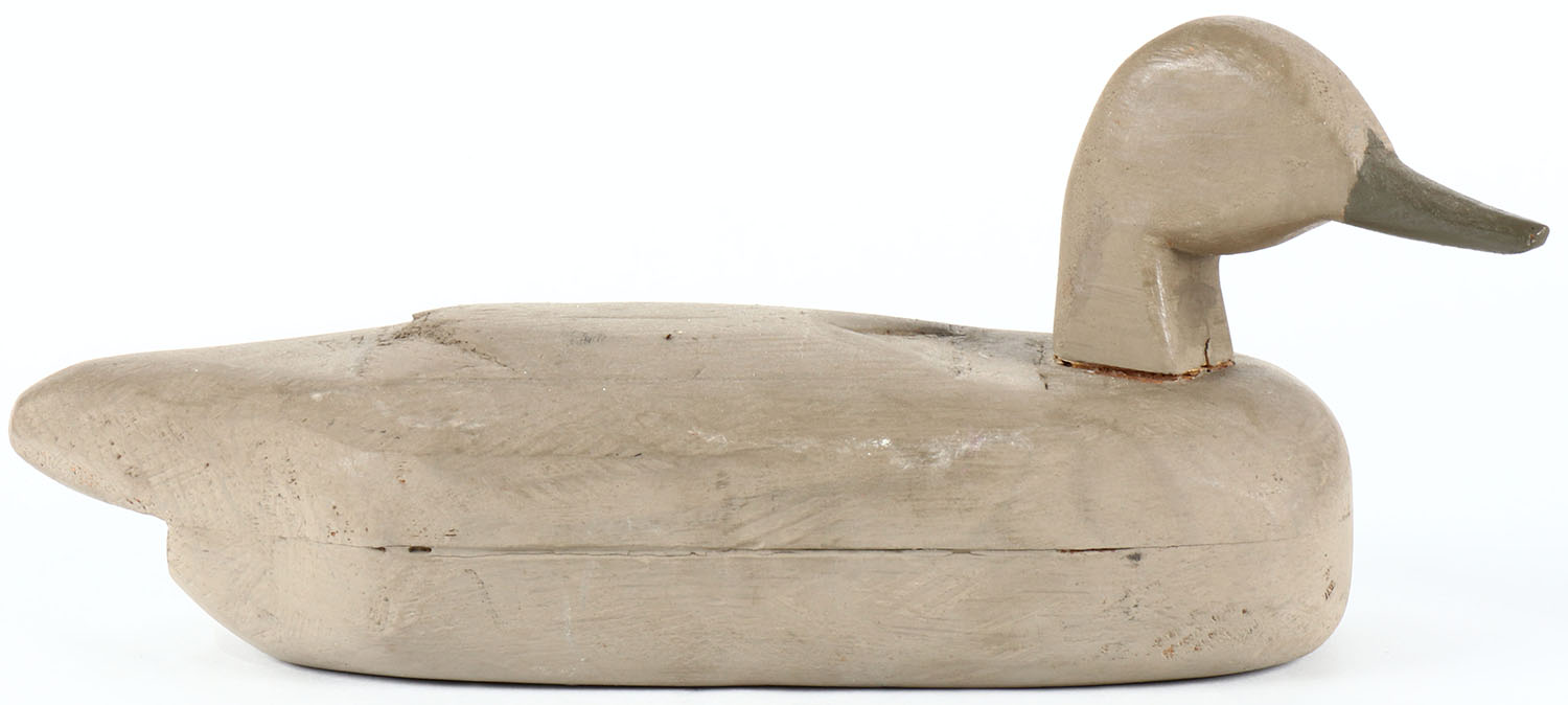 Farmyard Duck by unknown maker, no eyes, solid wood, original paint, head is loose. Grade: Very Good - Value: 20 to 40