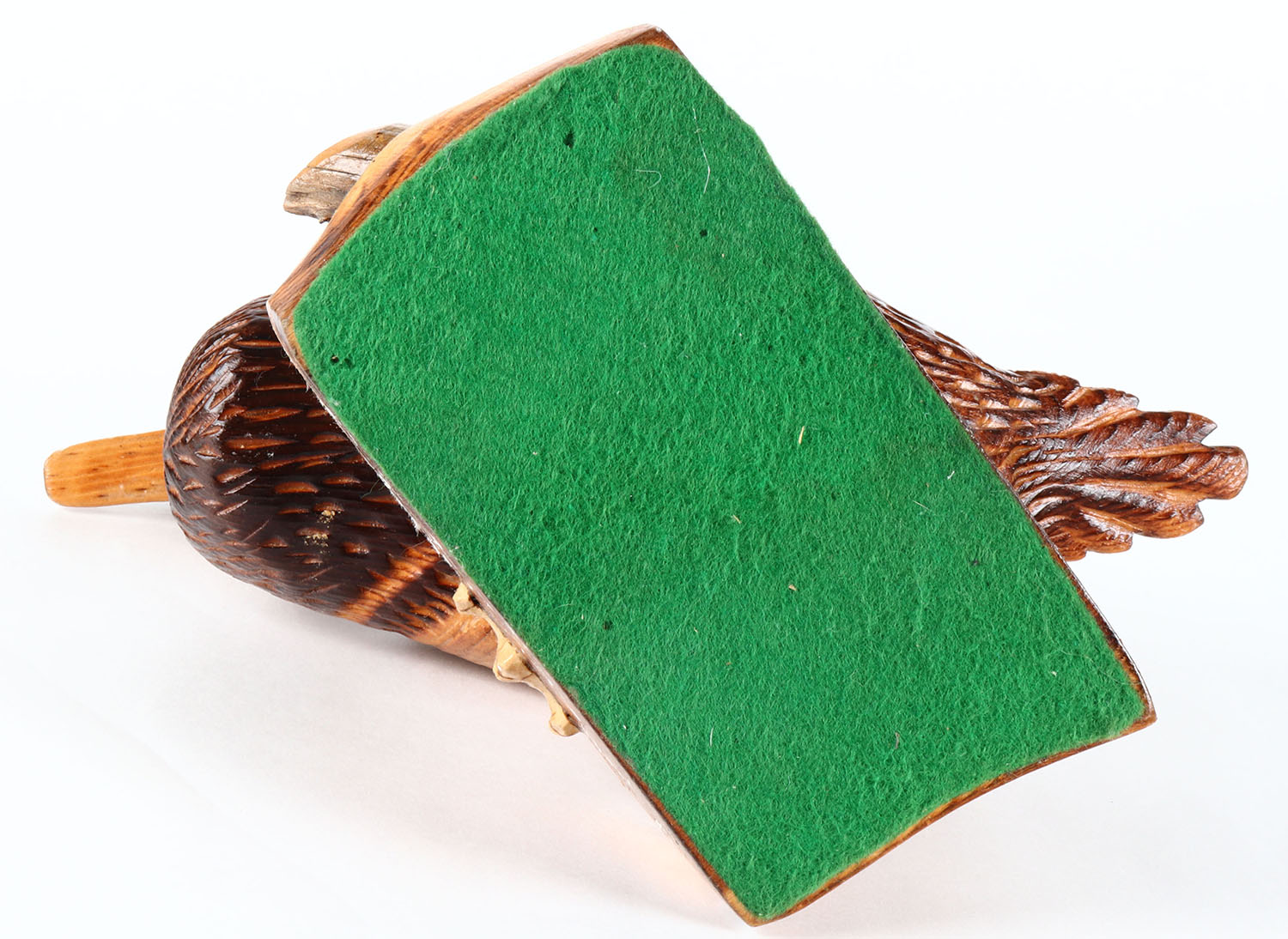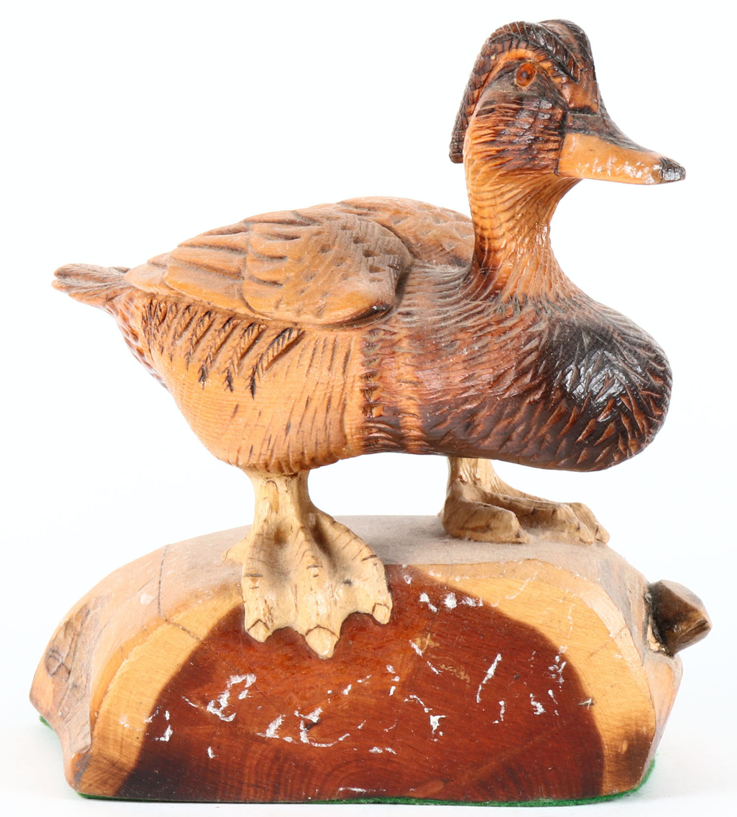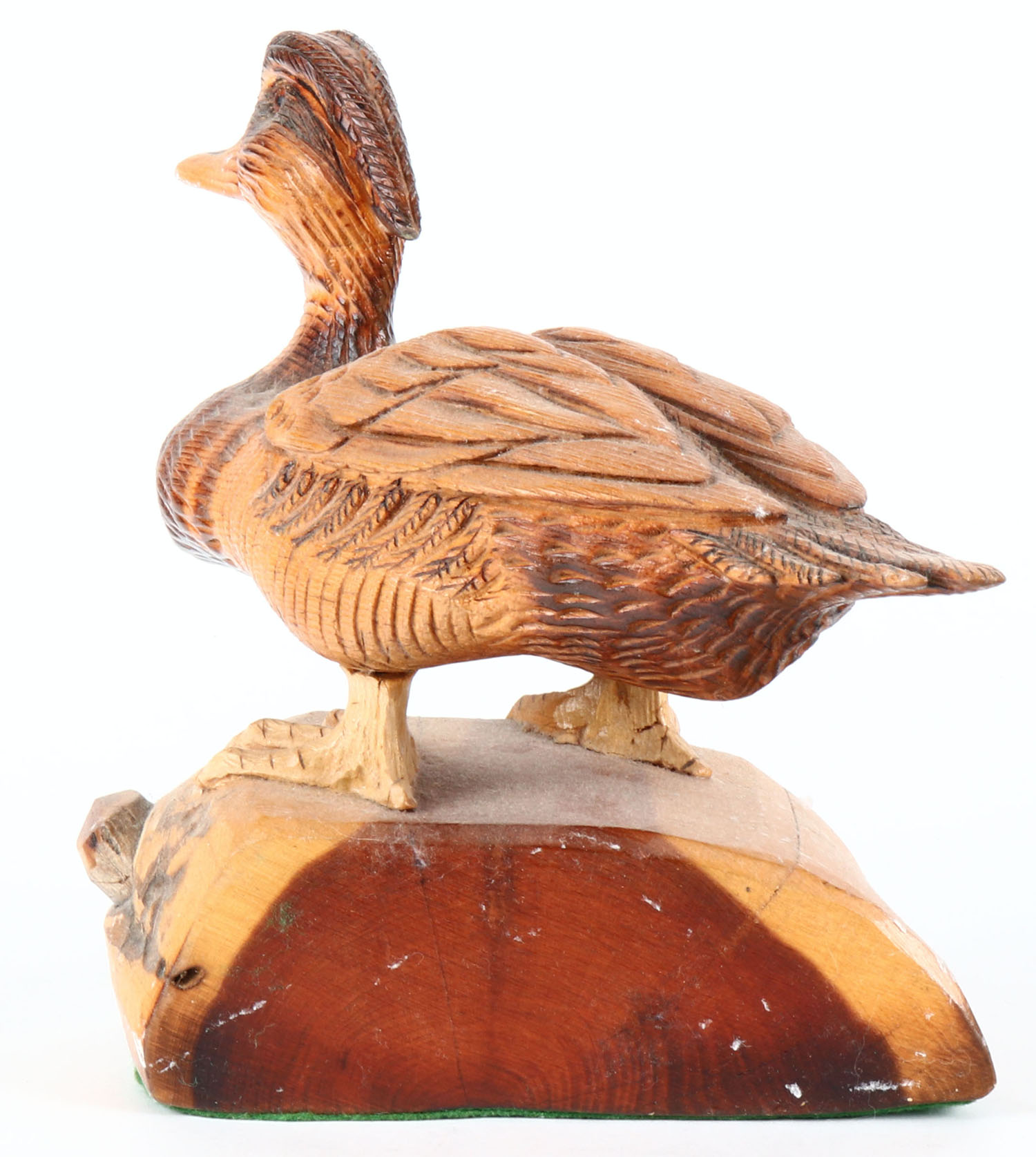 Woodduck Drake by unknown maker, glass eyes, solid wood on wood stand, structurally excellent. Grade: Excellent + - Value: 20 to 40