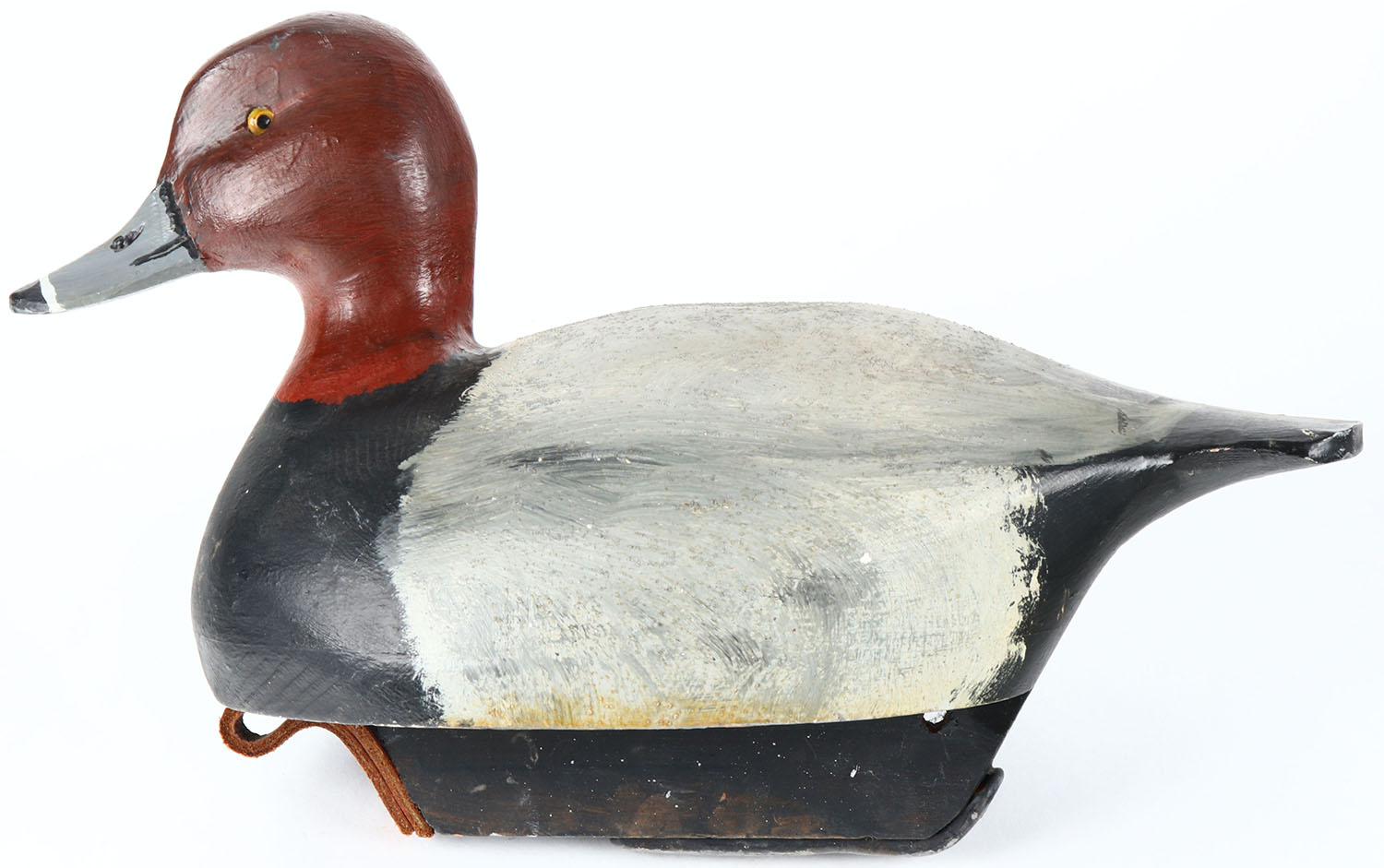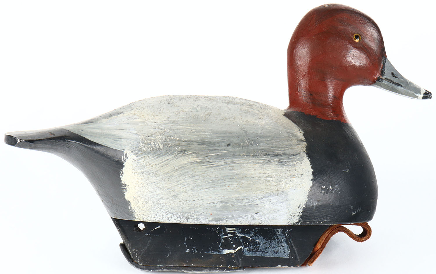 Redhead Drake by unknown maker, glass eyes, solid wood, original paint, structurally excellent. Grade: Excellent + - Value: 30 to 60