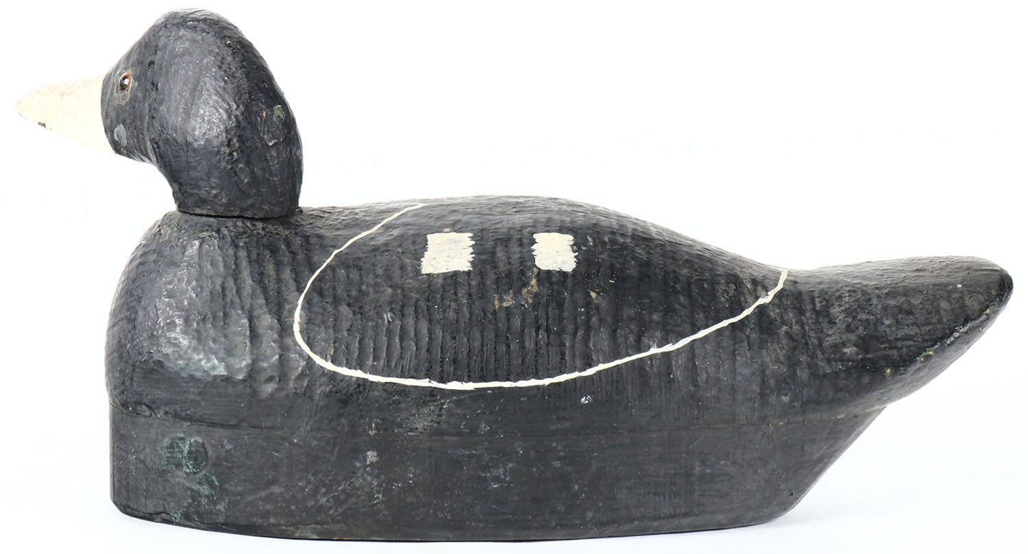 Coot by unknown maker, glass eyes, hollow wood, possible original paint, structurally excellent. Grade: Excellent - Value: 20 to 60