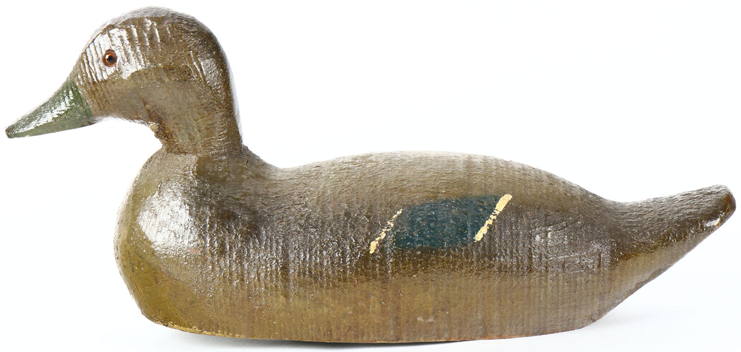 Hen Mallard by Animal Trap Company, Pascagoula, MS, glass eyes, solid wood, original paint protected by an old coat of varnish, structurally excellent. Grade: Excellent - Value: 20 to 40