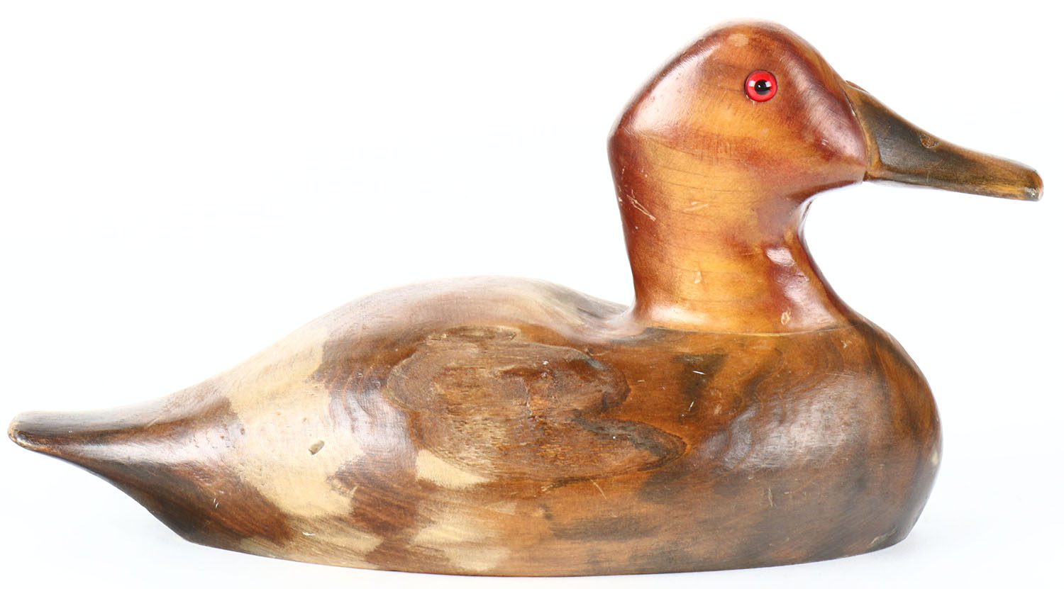 Canvasback Drake by Ron Fisher, glass eyes, solid wood, orginal paint, structurally excellent, signed and branded on bottom. Grade: Excellent ++ - Value: 20 to 60