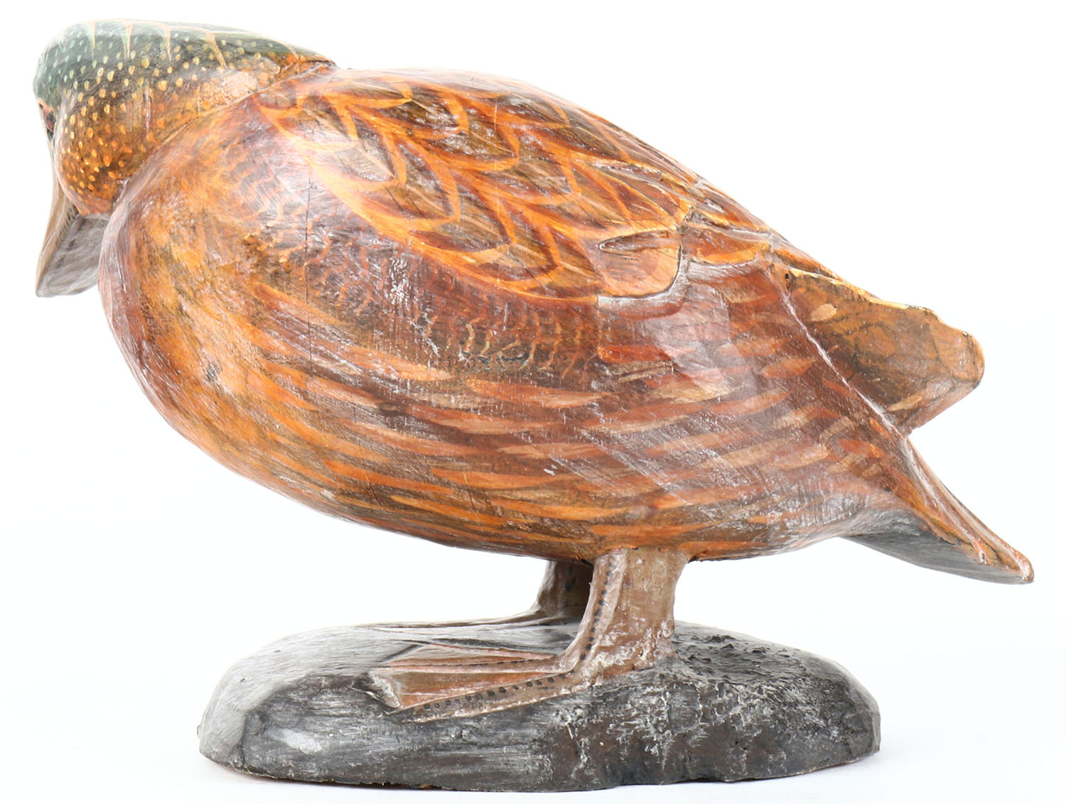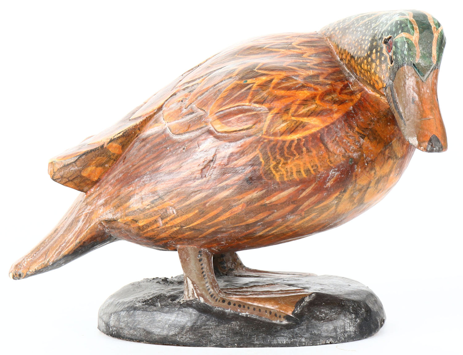 Woodduck Drake by unknown maker, painted eyes, solid wood, original paint, structurally excellent. Grade: Excellent ++ - Value: 40 to 80