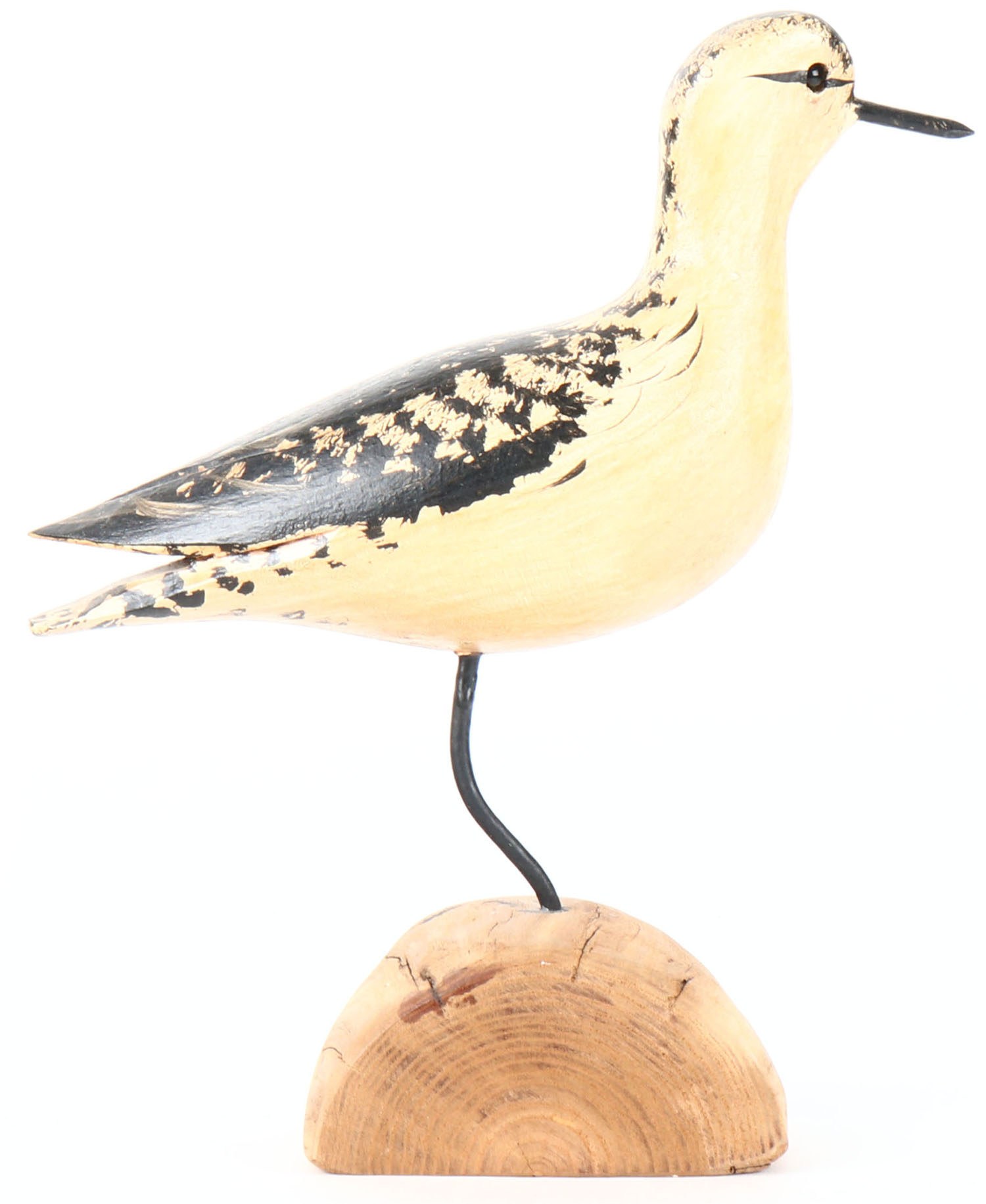Black Bellied Plover by Jim Slack, Illinois, glass eyes, solid woo on wood stand, original paint, structurally excellent, signed on bottom. Grade: Excellent - Value: 20 to 40