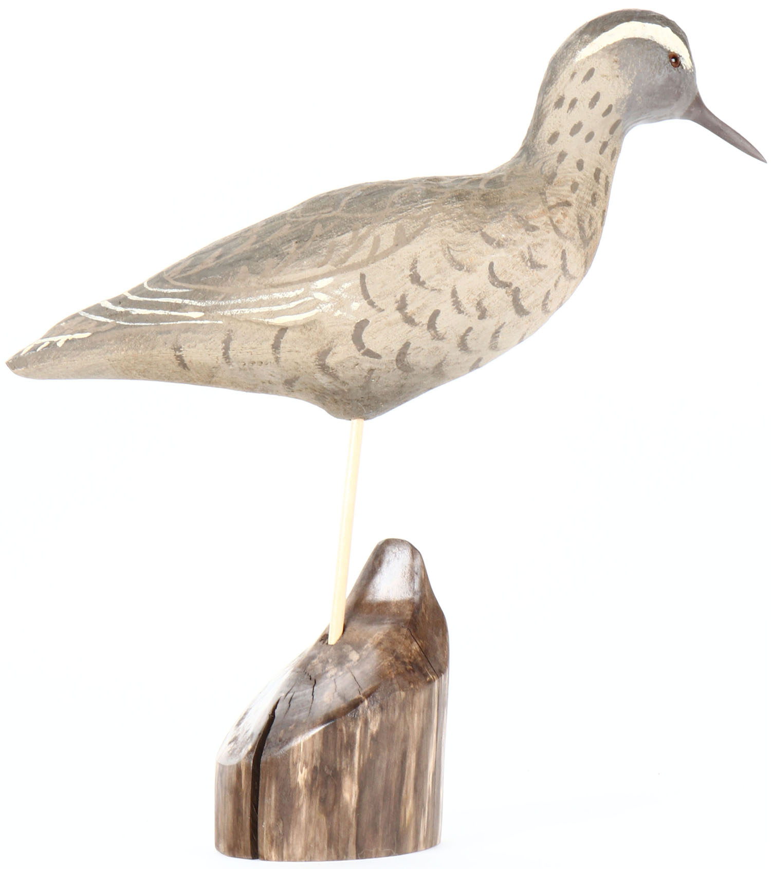Shorebird by Herters, Minnesota, part of the 1893 series from the 1960s, glass eyes, solid wood, original paint, part of the bill is broke off, structurally excellent. Grade: Excellent - Value: 30 to 60
