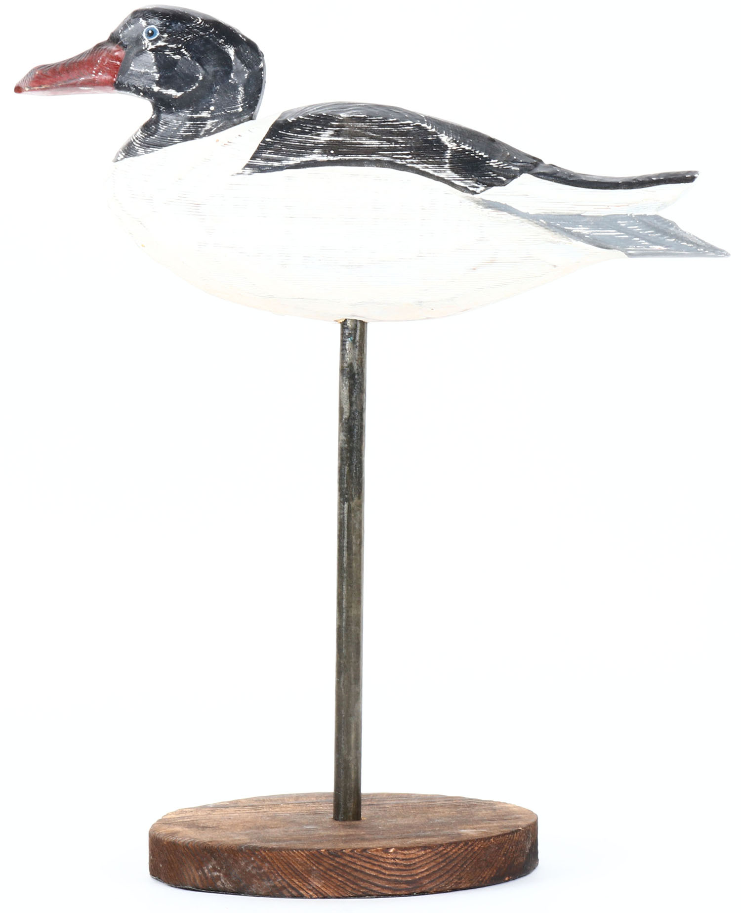 Shorebird by unknown maker, painted eyes, solid wood on wood stand, original paint distressed to appear old, structurally excellent. Grade: Excellent - Value: 10 to 40