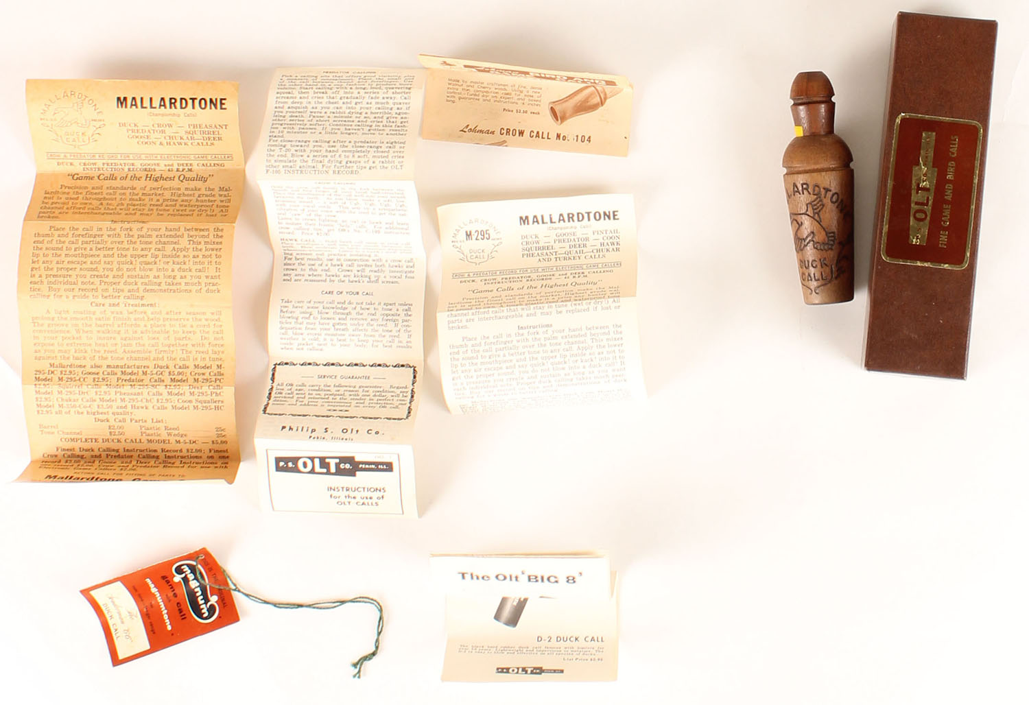 Mallard Tone Duck Call with yellow stopper, has P.S. Olt box with lots of paperwork. Grade: Very Good - Value: 6 to 30