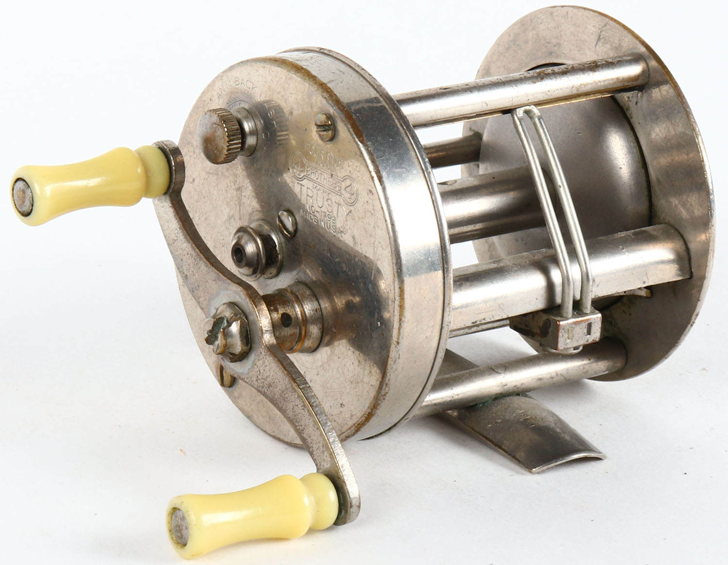 4 Brothers Trusty No. 1793 level wind reel, dual handle. Grade: Excellent - Value: 6 to 30