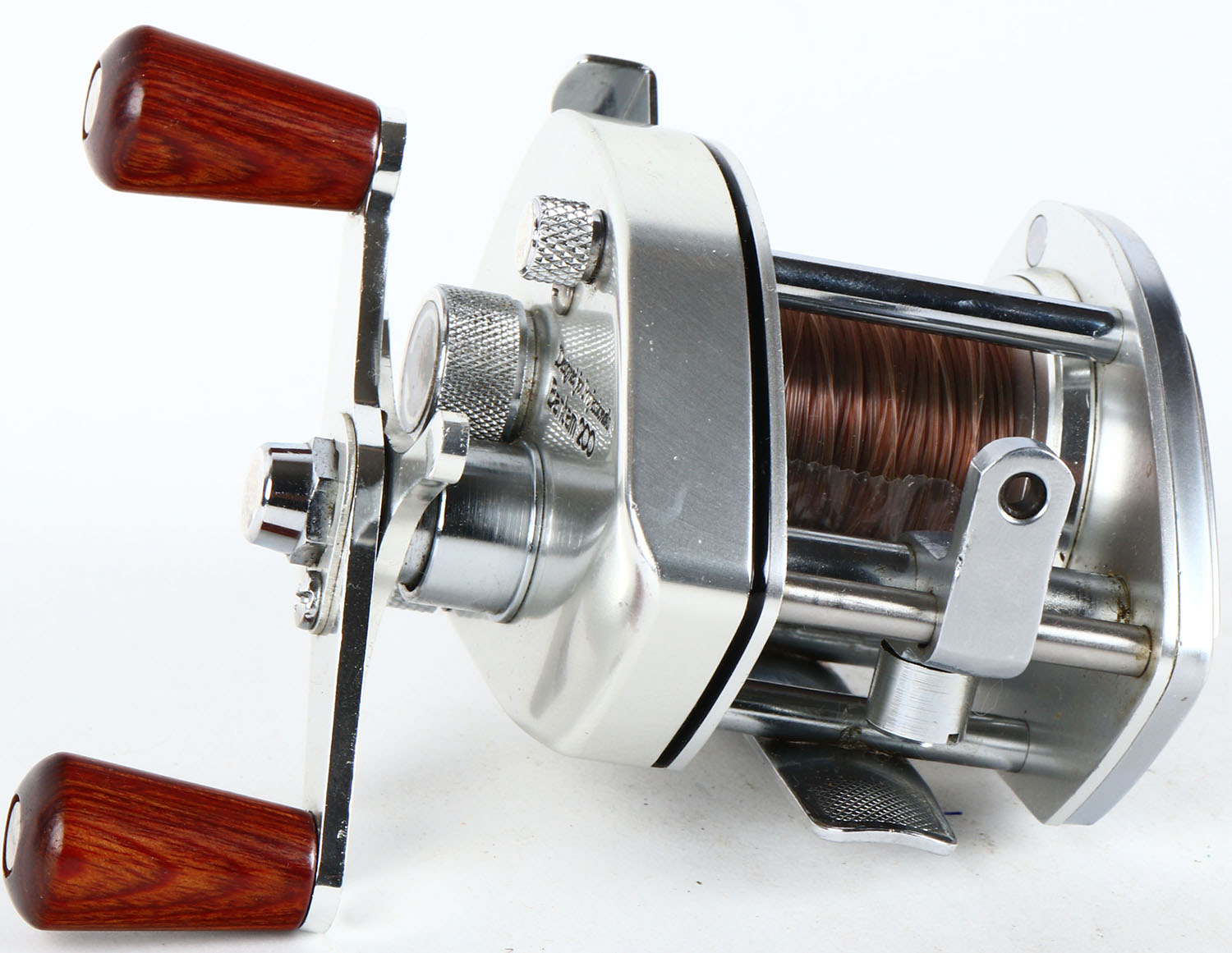 Rare Vintage Shimano Bantam Professional 200 Baitcasting Reel Silver Japan RH, looks brand new, dual wood handles. Grade: MINT - Value: 50 to 250