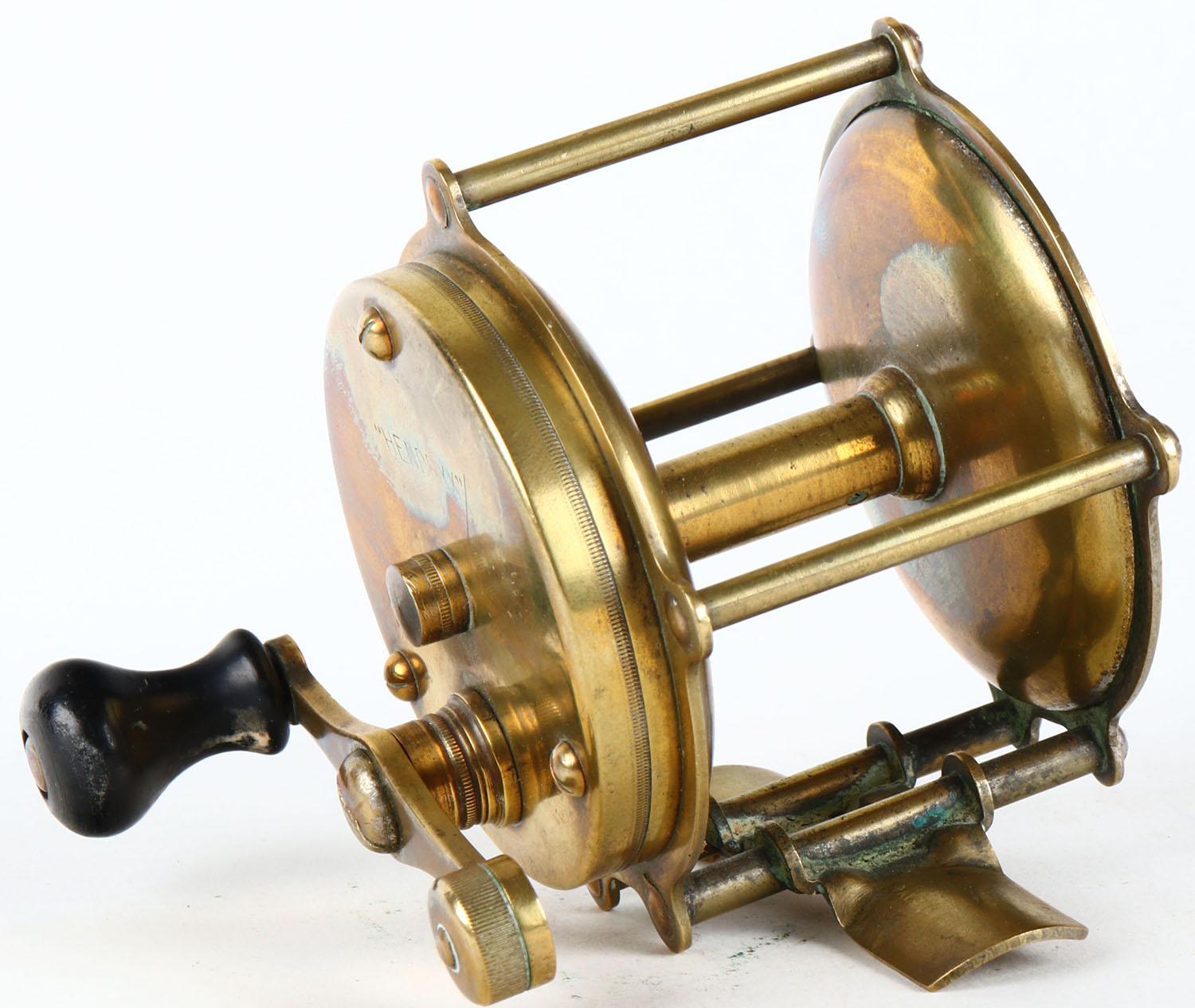 | Hendryx Brass Reel, 200yds, single wood handle well marked, stro...