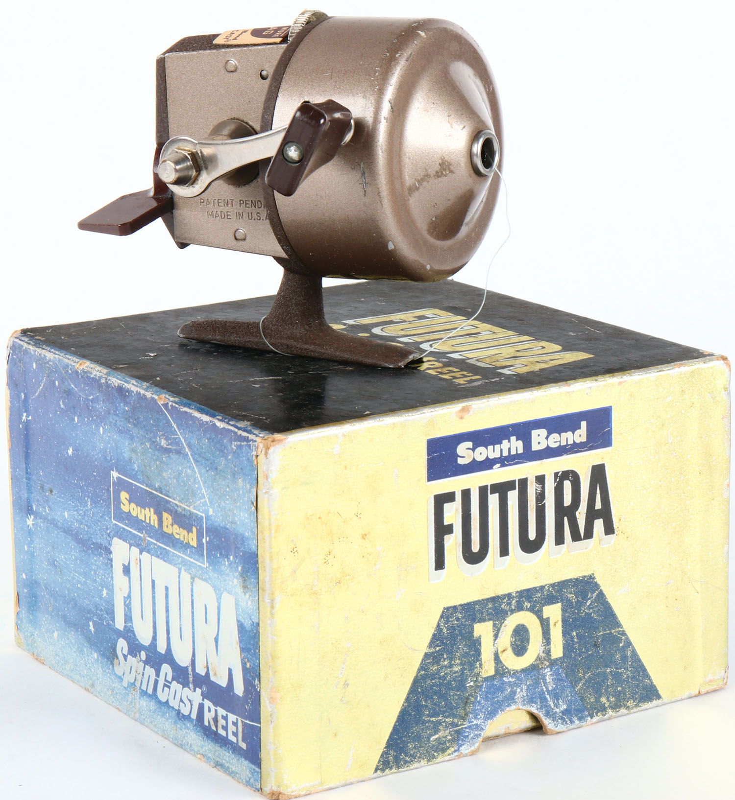 South Bend Futura Spin Cast Reel in original box, No. 101. Grade: Excellent - Value: 6 to 30
