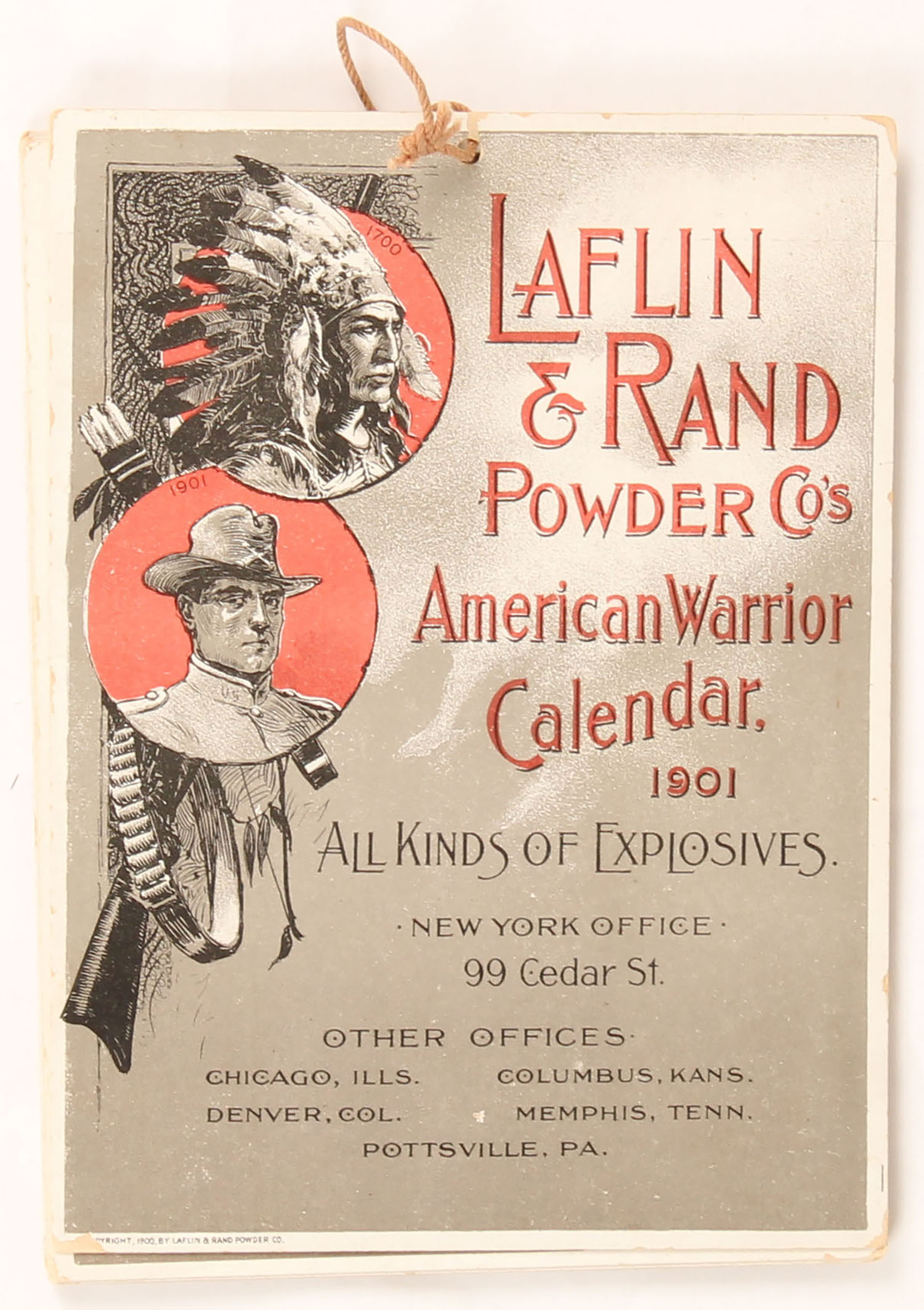 RARE 1901 Laflin & Rand Powder Co, American Warrior 1901, each page has two months and is made like a diecut, 7 pages total with cover, 5'' x 6 3/4''. Grade: Excellent - Value: 200 to 1000
