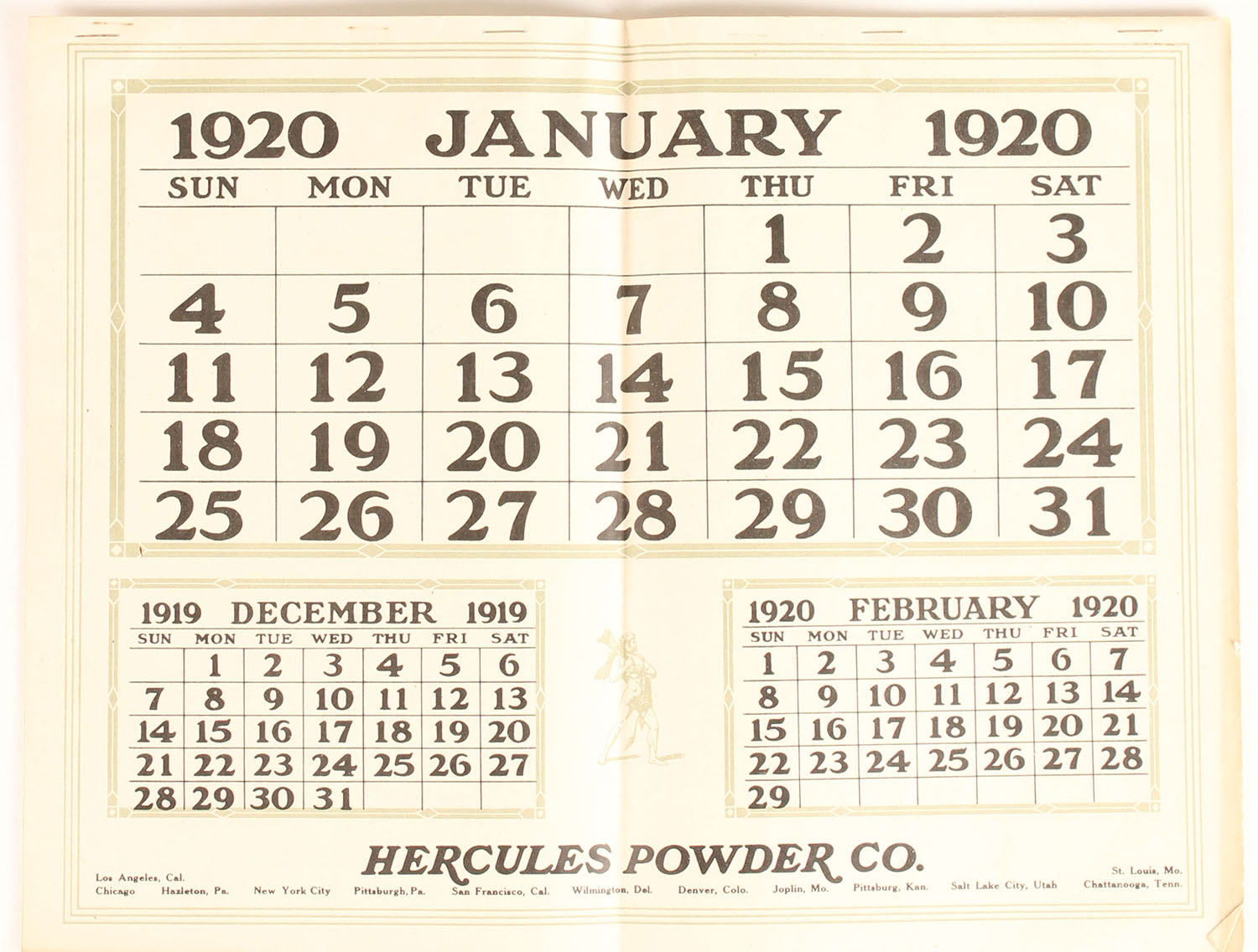 Full pad of pages for 1930 Hercules calendar. Grade: Excellent - Value: 20 to 200