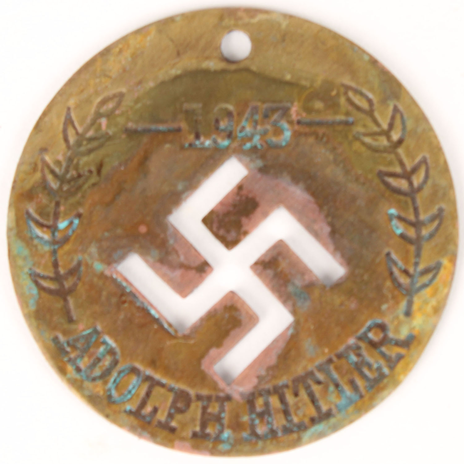 Pendant ''Adolf Hitler 1943'', with swastika, similar size to a silver dollar, Grade: Very Good - Value: 50 to 250