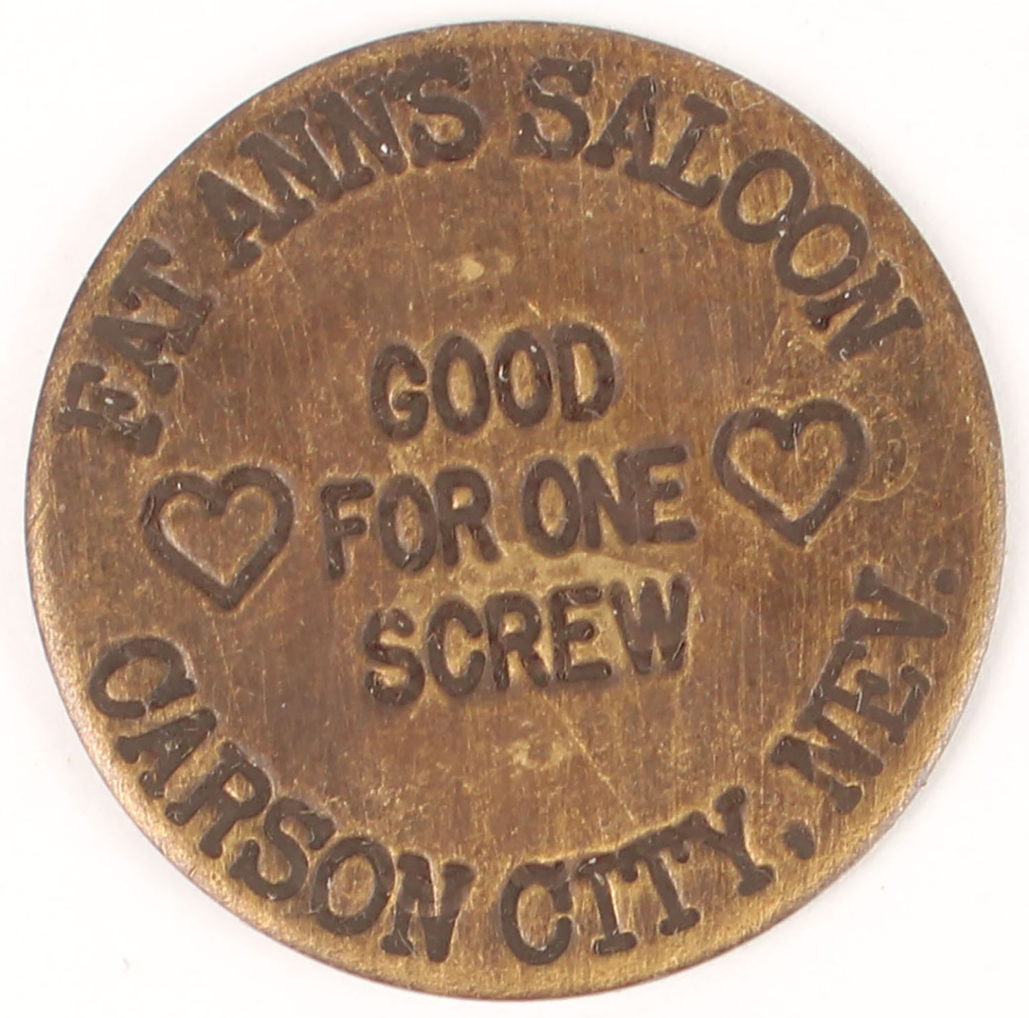 Double sided Brothel Token. ''Fat anns Sallon Carson City, Nev.''. Grade: Excellent - Value: 6 to 40
