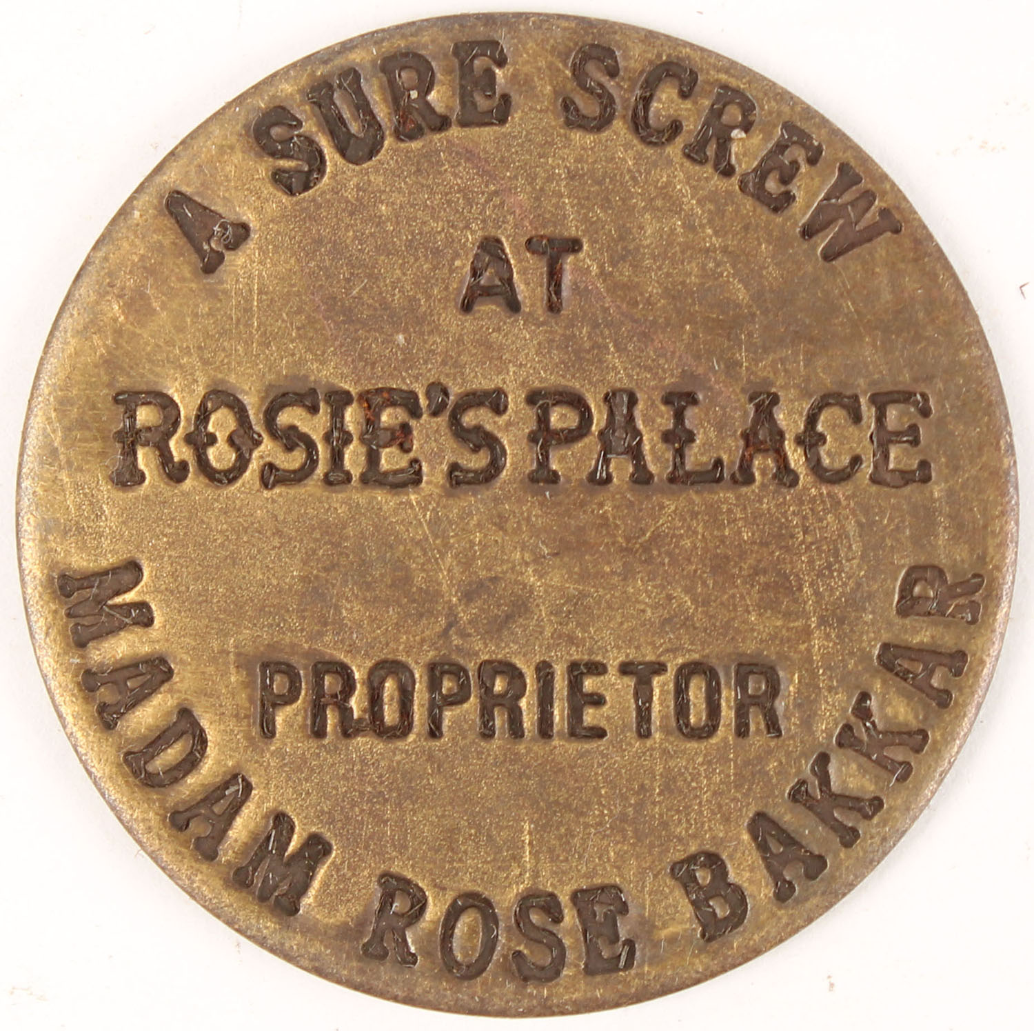 Double sided Brothel Token. ''Madam Rose Bakkar''. Grade: Excellent - Value: 6 to 40
