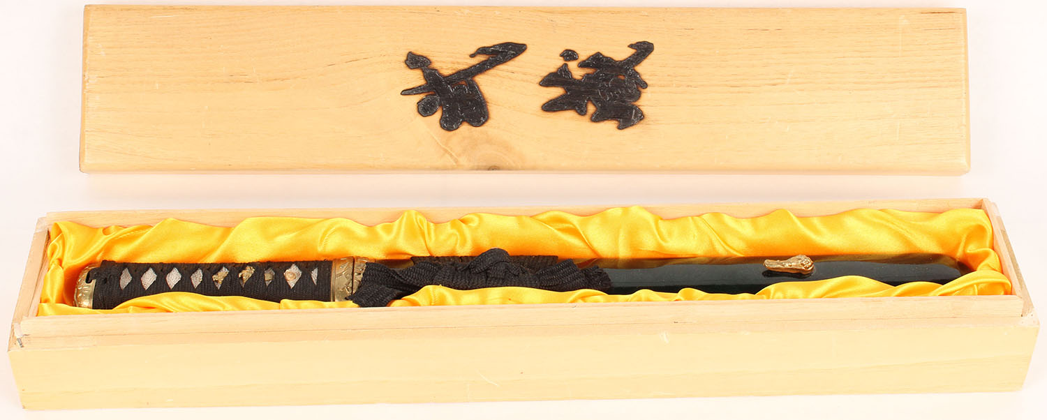Samurai Musashi Tanto, in wood box with liner, all very bright and clean, 10'' blade. Grade: Excellent ++ - Value: 30 to 90