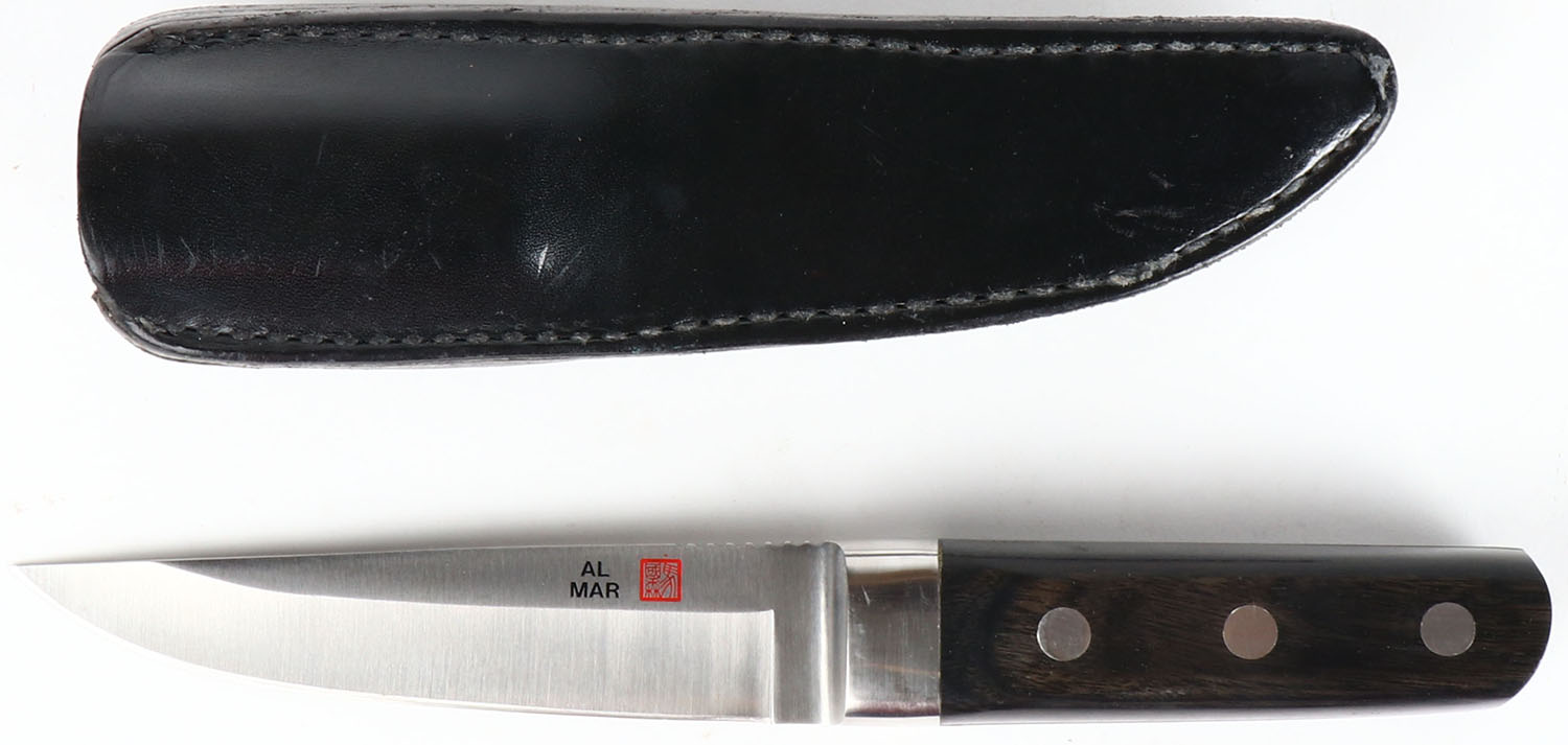 RARE! Vintage AL MAR Japanese fixed blade knife, with leather sheath, #PP 032/200, 5'' blade, all bright and clean. Grade: Excellent - Value: 50 to 300