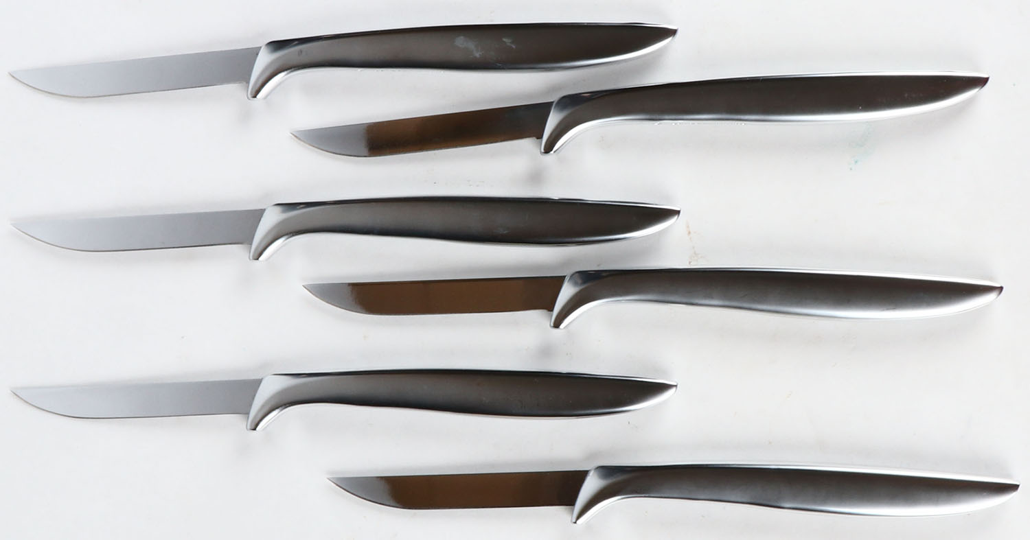 Gerber legendary knife display set, M6c, 6 knife, all bright and clean. Grade: Excellent ++ - Value: 40 to 150