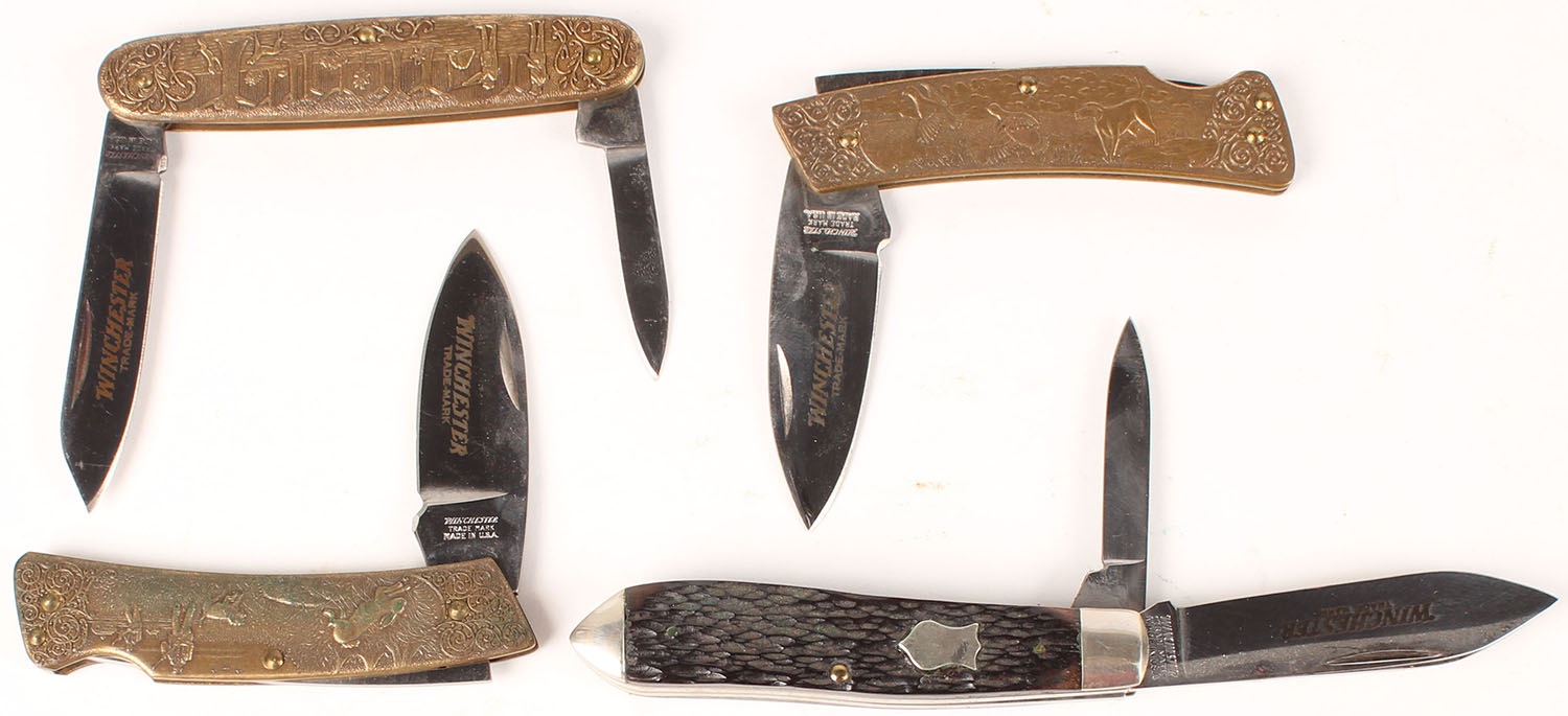Lot of 4 Winchester knives in orginal boxes , all have some rust but not a lot. Grade: Very Good - Value: 30 to 200
