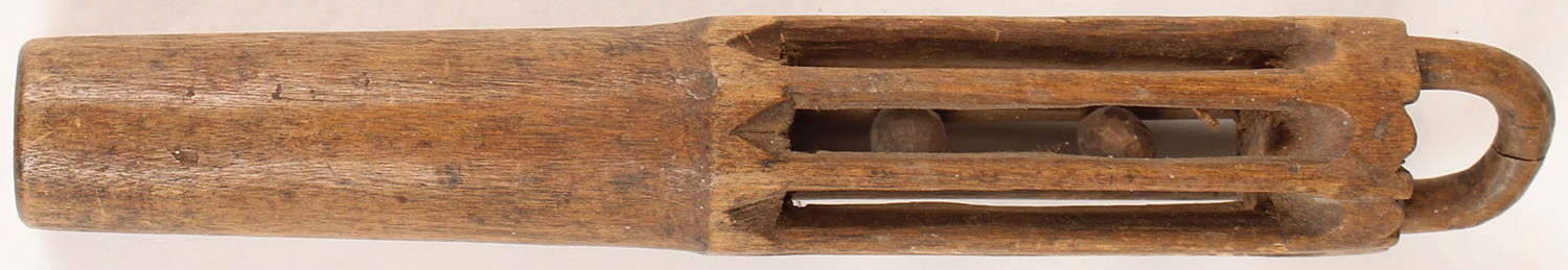 Wooden baby rattle, from 1800s, 7''. Grade: Excellent - Value: 20 to 200