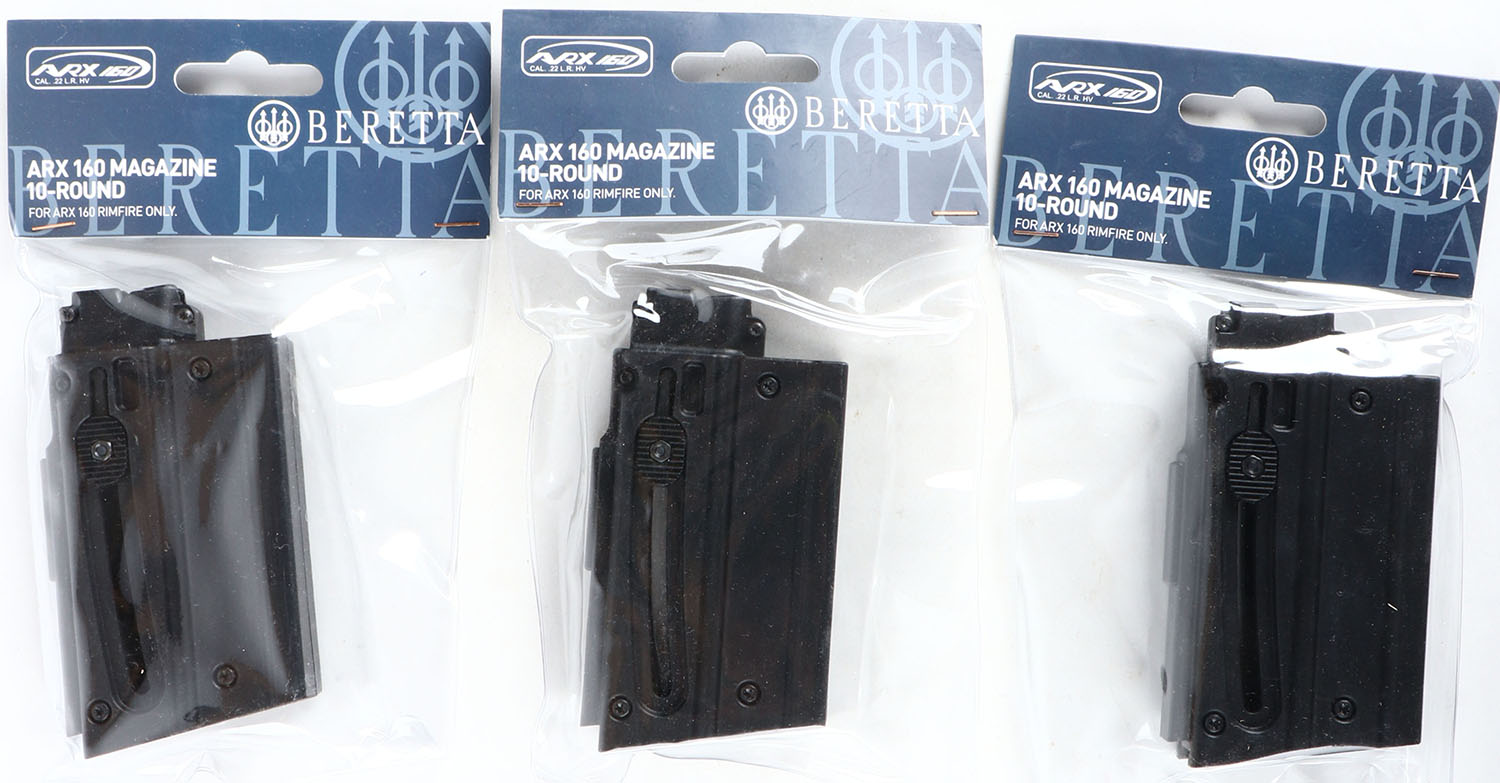 Lot of 3 Beretta ARX160 10rd. .22 LR mag, sealed in orginal packaging. Grade: MINT - Value: 10 to 40