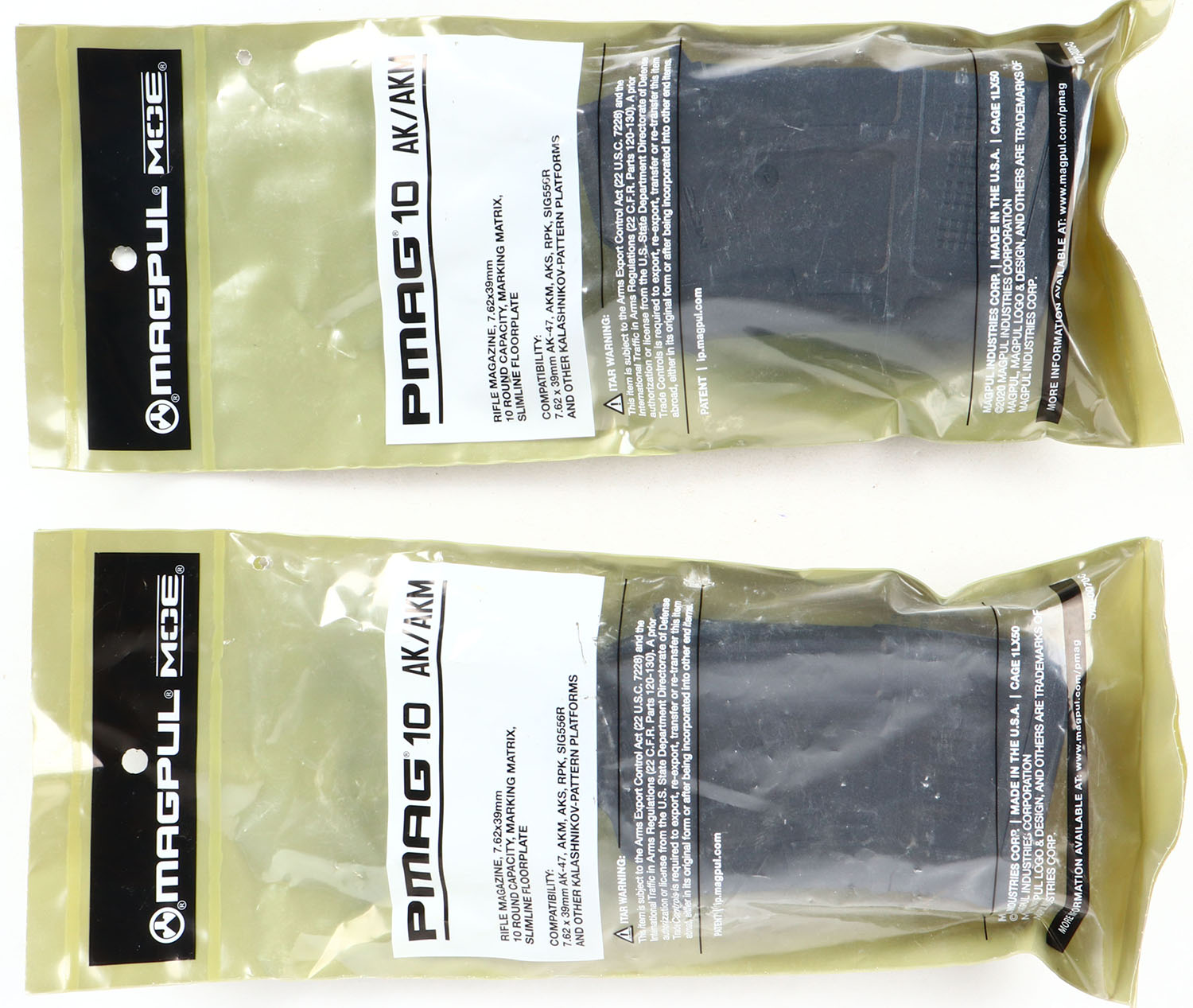 Lot of 2 Pmag 10 AK, 7.62 x 39mm cal. 10 rd mags. Grade: MINT - Value: 10 to 40