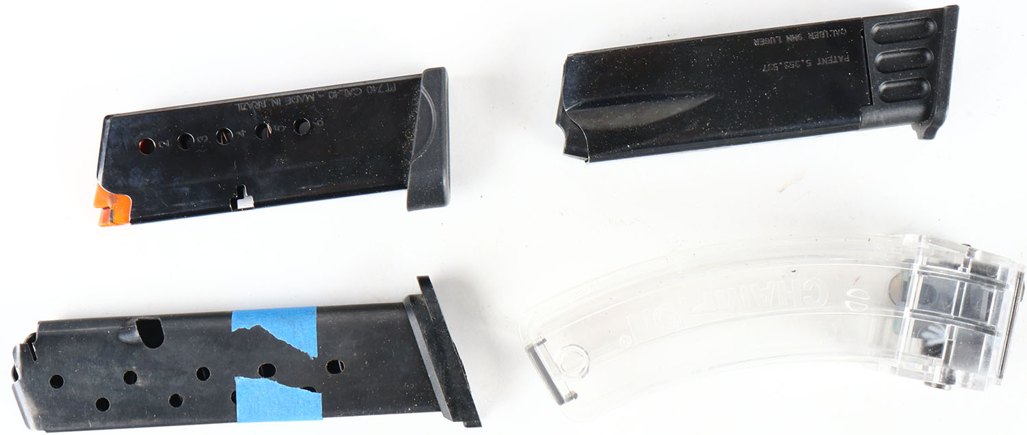 lot of 4 various mags., 9mm, 40 S&W and .22 cal. Grade: Very Good - Value: 10 to 50
