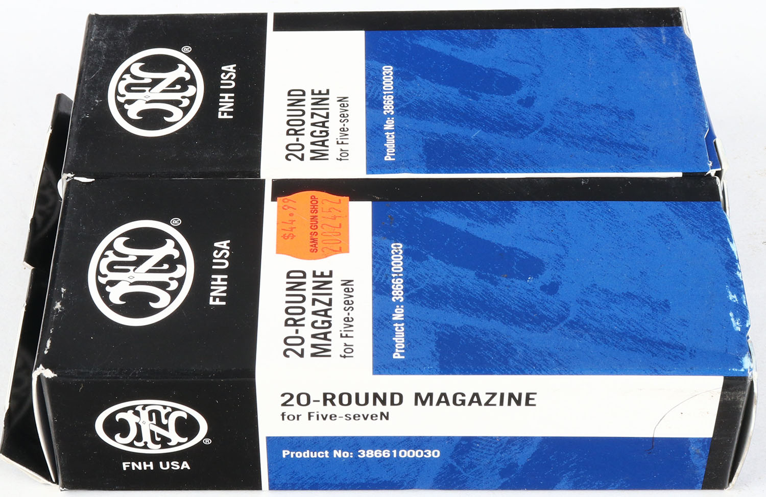 Lot of 2 FN, 20 RD mags., in orginal box, 5.7x28. Grade: Excellent ++ - Value: 30 to 90